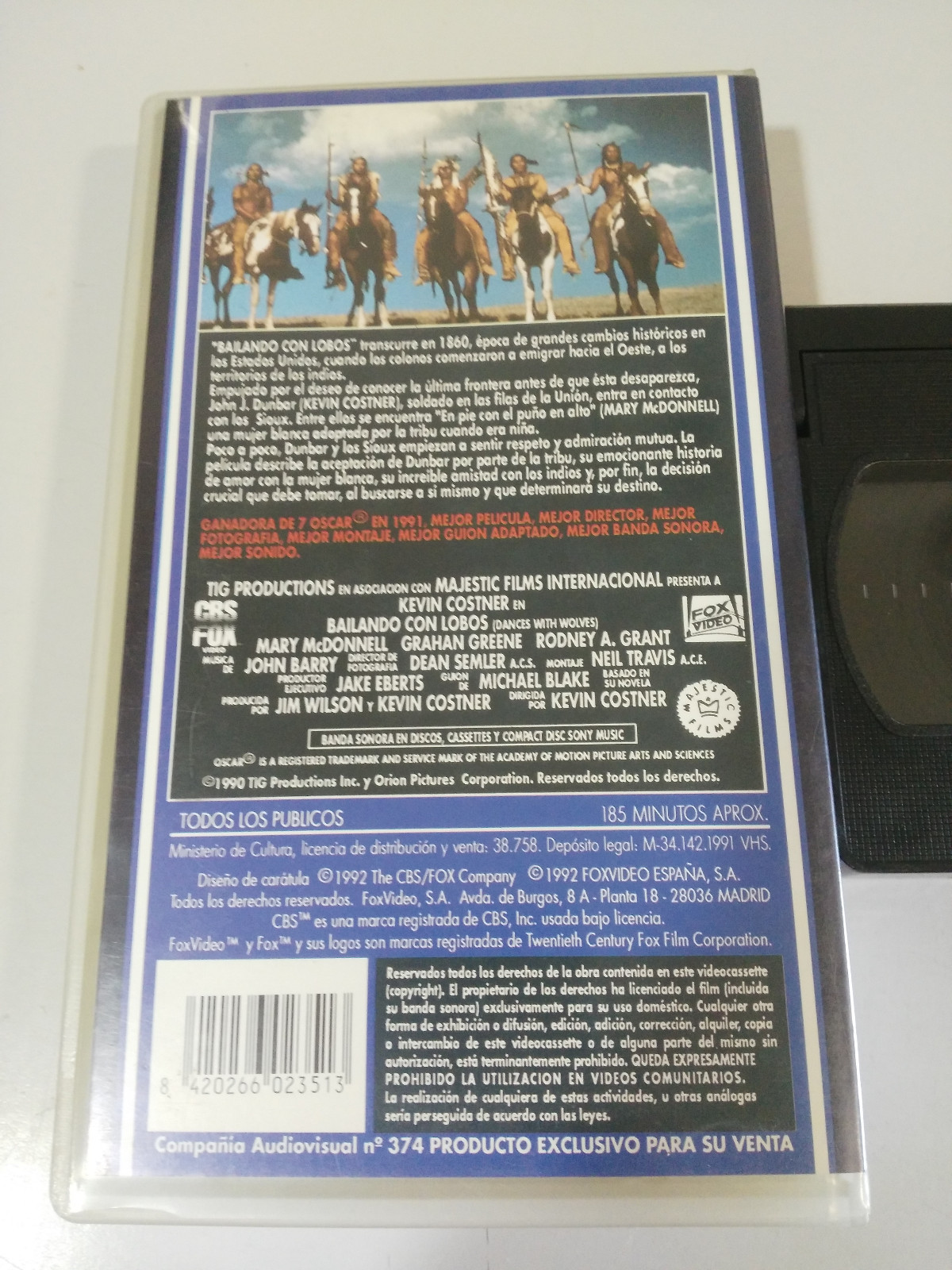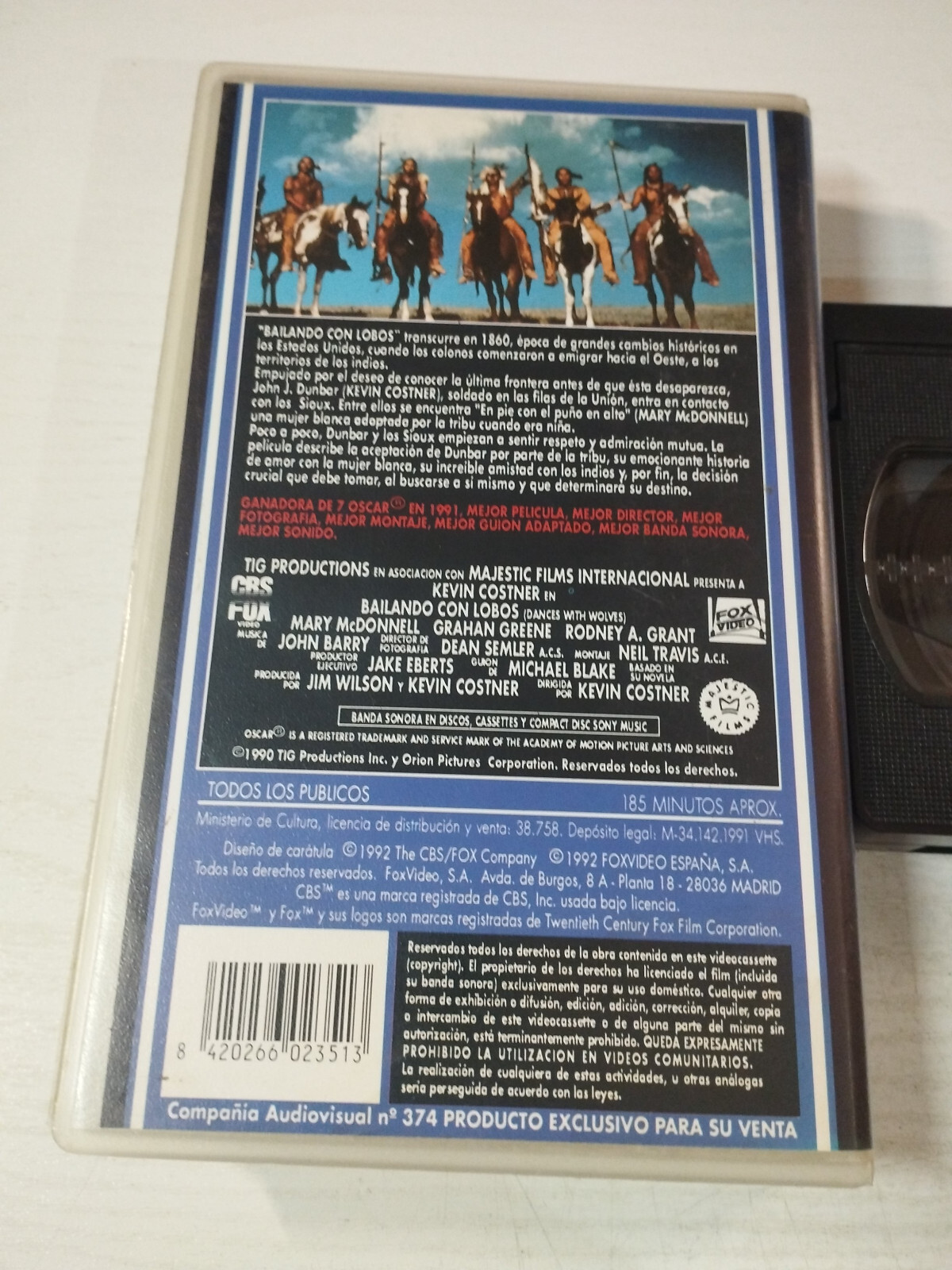 bailando con lobos DANCES WITH WOLVES KEVIN COSTNER VHS TAPE CASTELLANO