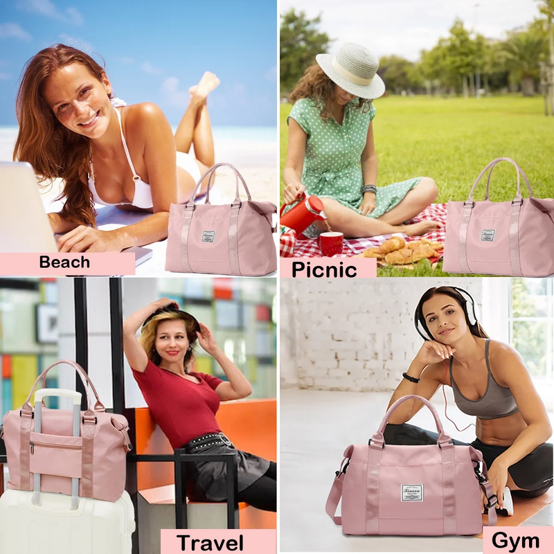 Perfect for carrying all your fitness and travel essentials. It can be used as an airplane travel bag, luggage bag, fitness bag, weekender bag,tote bag, beach bag. Our women's overnight bag is suitable for indoor and outdoor sports such as travel, sports, weekend trips, yoga, gym, beach, business or other daily use.