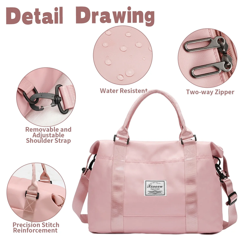 This travel bag for women is made of durable and waterproof nylon to protect your belongings with high quality zippers and metal buttons. The detachable shoulder strap is adjustable and removable which makes it easier for you to carry this travel bag. The back of this travel bag has a luggage strap for your travel/business trip. You can also carry it as a handbag, shoulder bag or messenger bag.