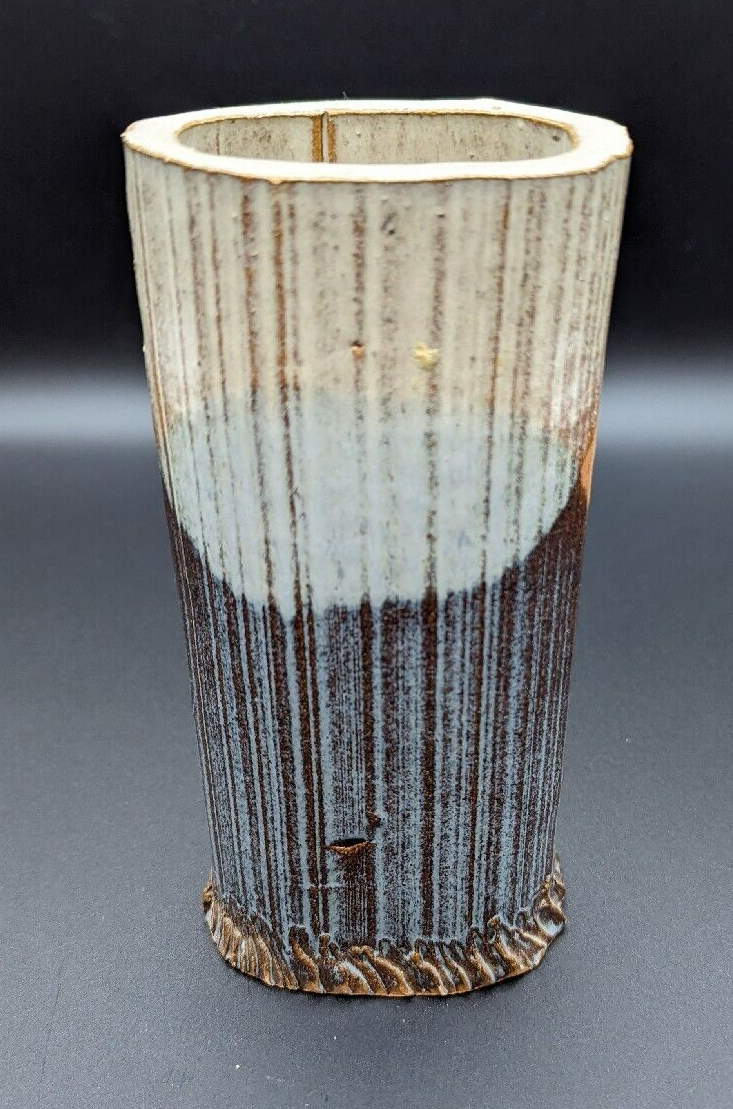 Art Pottery Vase 3D Wheat Signed Blue And Cream Color