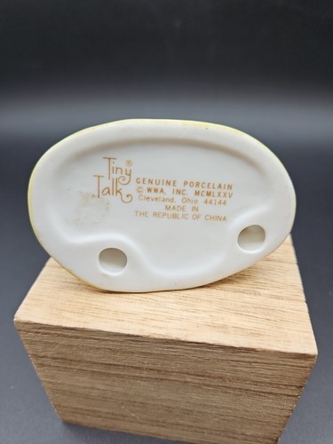 The product is a vintage porcelain figurine from the Tiny Talk collection by WWA Inc. It features a mom mouse with a baby mouse watering and is decorated with a Rabbit Family pattern. The figurine was manufactured in 1975 .