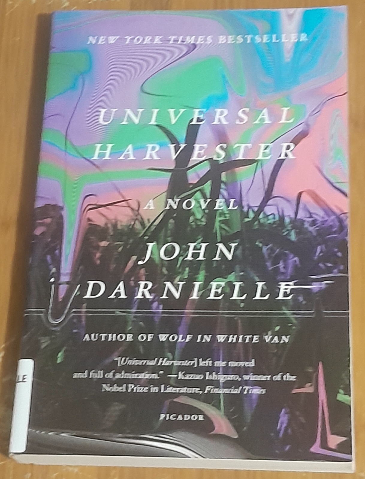 I am selling the trade paperback edition of the novel UNIVERSAL HARVESTER by John Darnielle. The book is a former library copy, so it has a sticker label on the spine and a marked bar code on the back cover. Otherwise, the book is in excellent condition. All pages are still clear, firm, and readable.