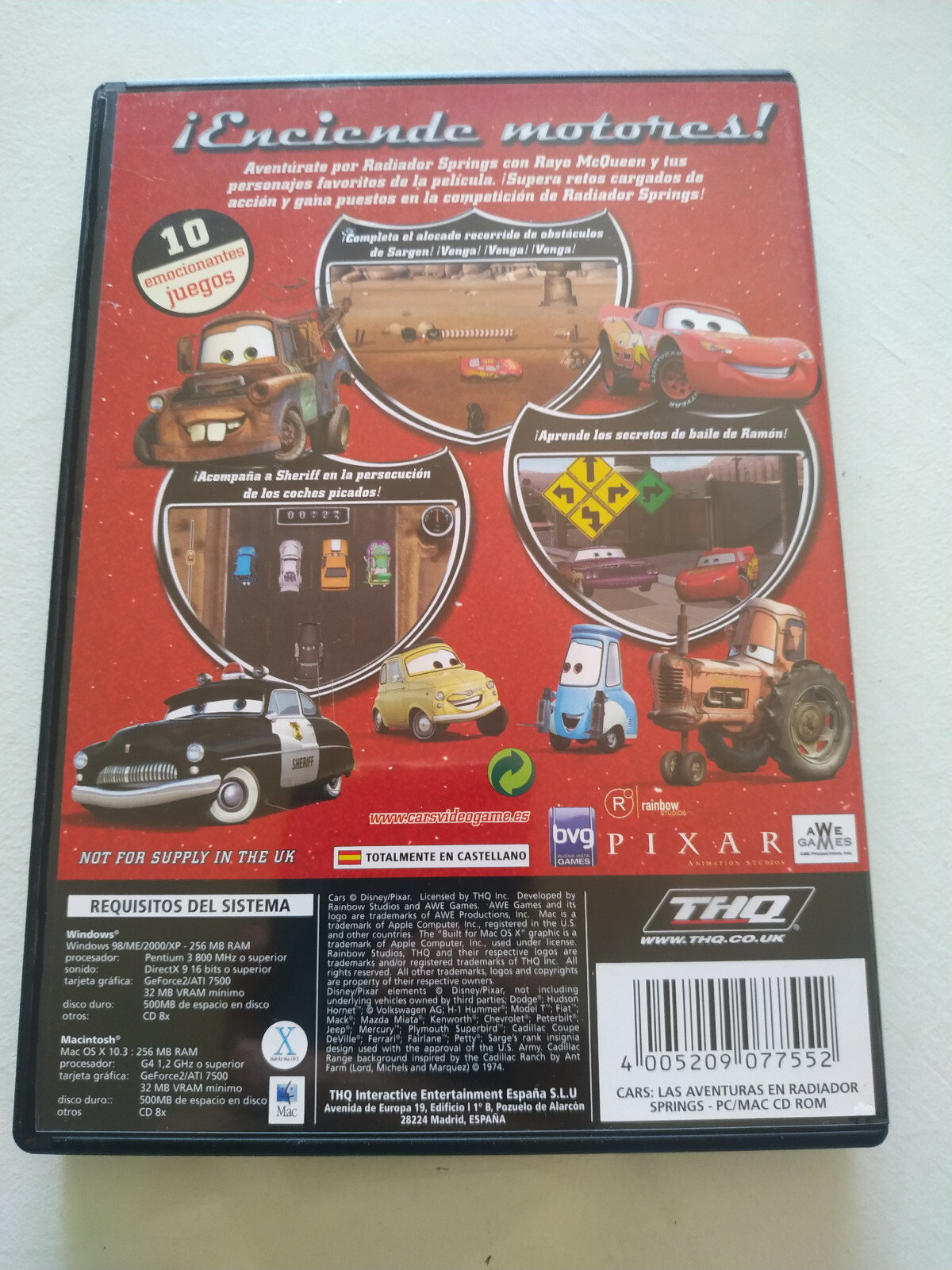 Cars aventuras de Radiator Springs Disney Pixar -juegopara PC CD-Rom Spain Am Please, si you are node agreementconel statedel article when you receive it and you are thinking of voting neutral or negative, we ask youque Write to usantes para resolve this situation. Remember que we accept returns sin problems and we preferno make a saleantesque receiveun unfavorable vote. We will communicate con paraque you are completely satisfiedcon the solution. Please, if you do not agree with the state of the item when you receive it and you are thinking about neutral or negative voting, we ask you to write to us before resolving this situation. Remember that we ACCEPT returns without problems and we prefer not to make a sale before receiving an unfavorable vote. We will communicate quickly so that you