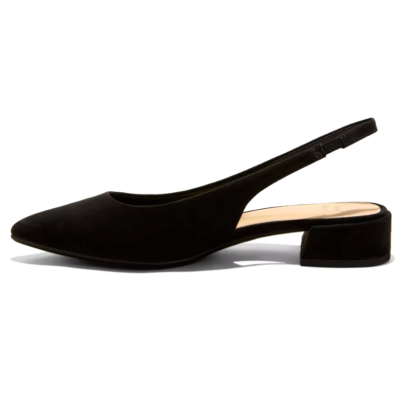 Ces talons pointus Elle Slingback d'un New Day ? font un ajout confortable et elegant a votre placard de chaussures. Fabriques a partir de tissu microsued avec doublure en polyurethane, ces talons sont concus avec un orteil pointu et un style a glissiere. Situes sur des talons de bloc de 1,25 pouce, ils presentent egalement des semelles amorties pour une marche confortable.