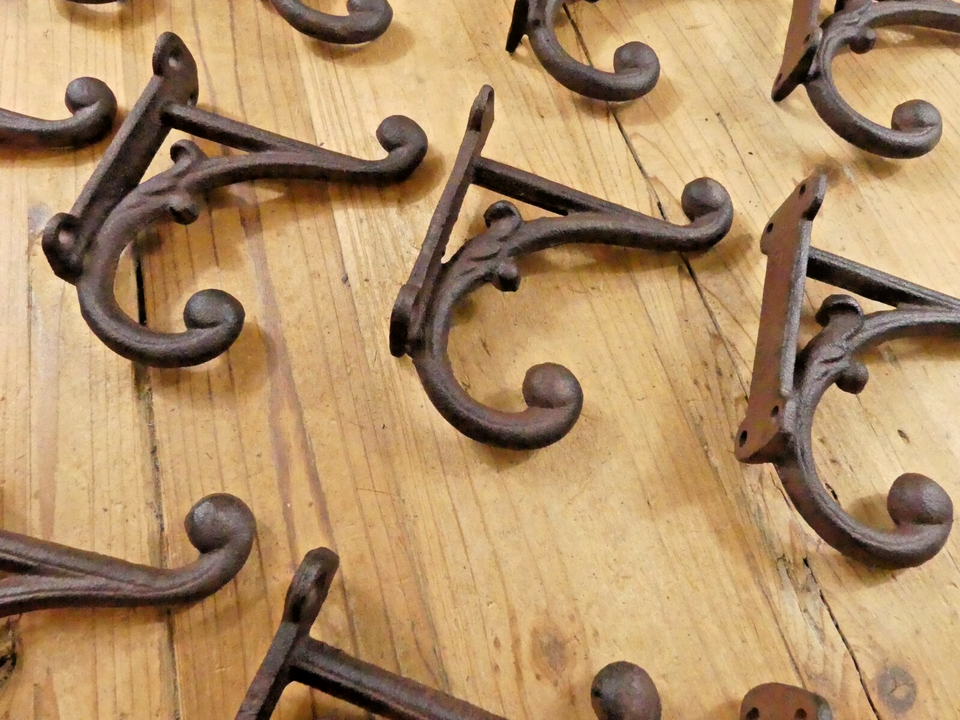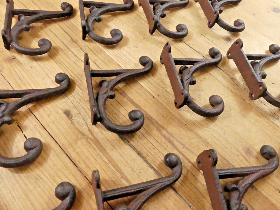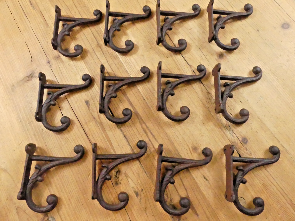 12 BROWN DOUBLE CAST IRON HOOKS! SALE INCLUDES 12 HOOKS!