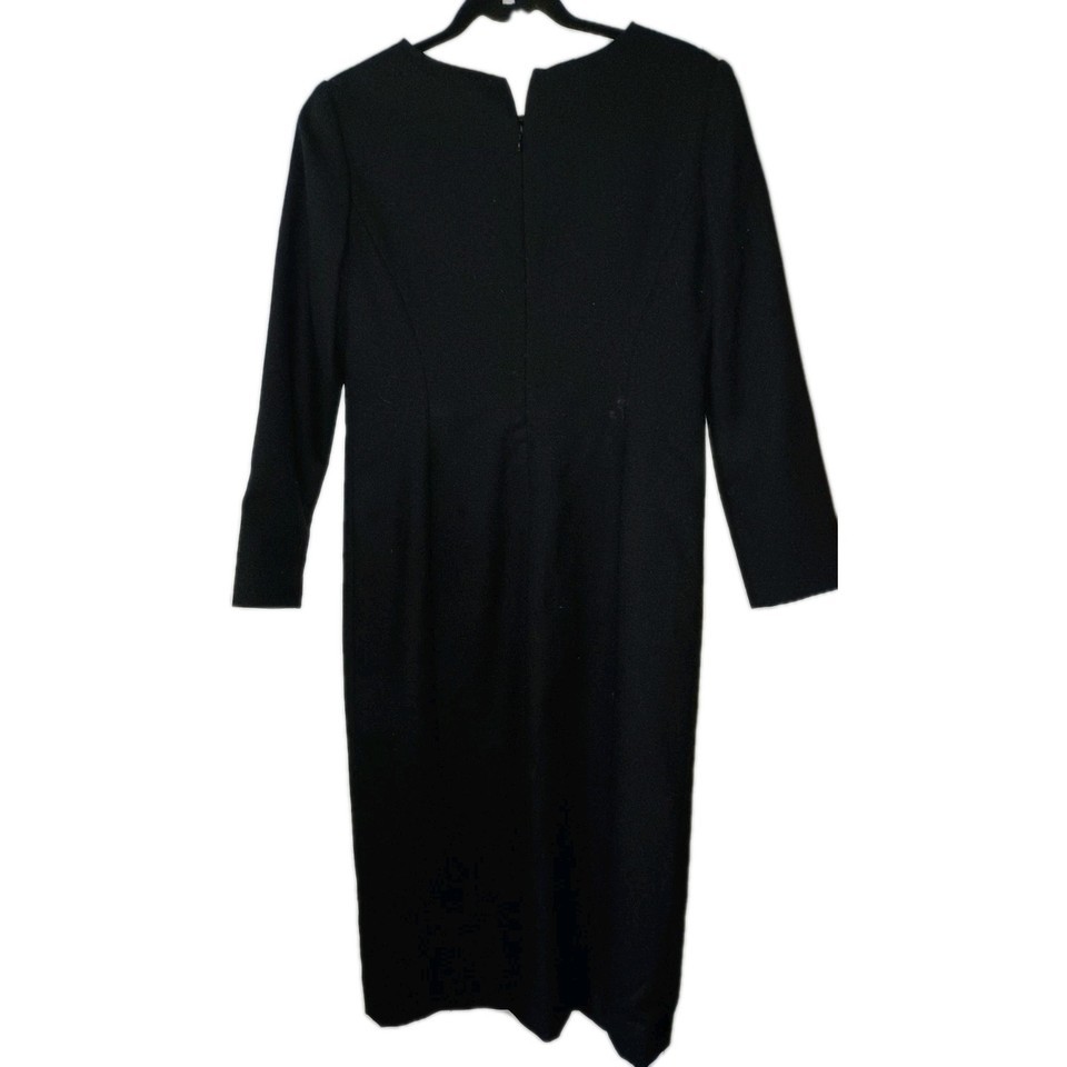 Vintage JG Hook Black Lined Size 10P Petite Shift Dress 100% Wool Long Sleeve