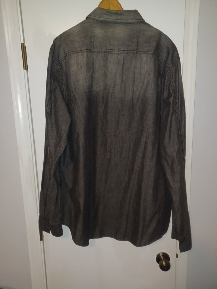 Sean John Casual Long Sleeve Shirt Zipper Pocket, Mens 3XL - Dark Gray