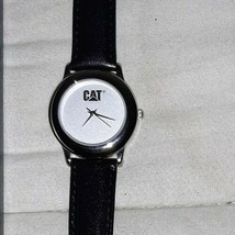 Unisex CAT Caterpillar Silver Tone Black Watch Genuine Leather Band