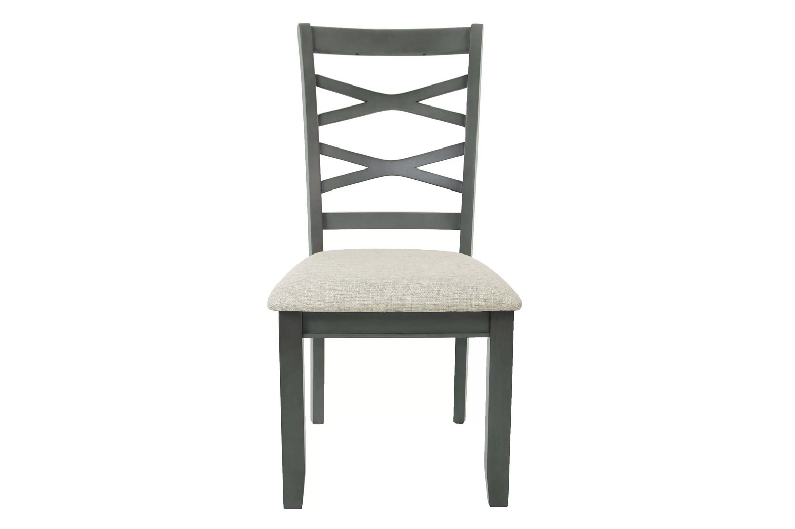 The set is crafted from durable rubber wood and finished in an elegant gray tone.