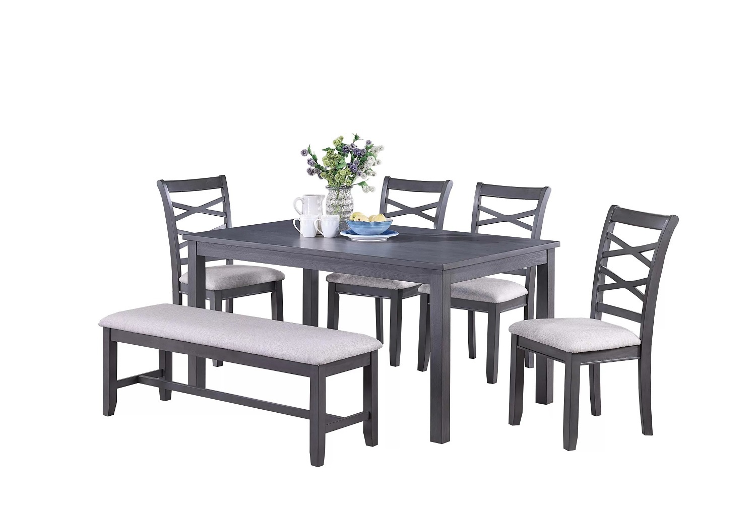 Dudley 6-Piece Rectangular Dining Set in Gray Wood Finish