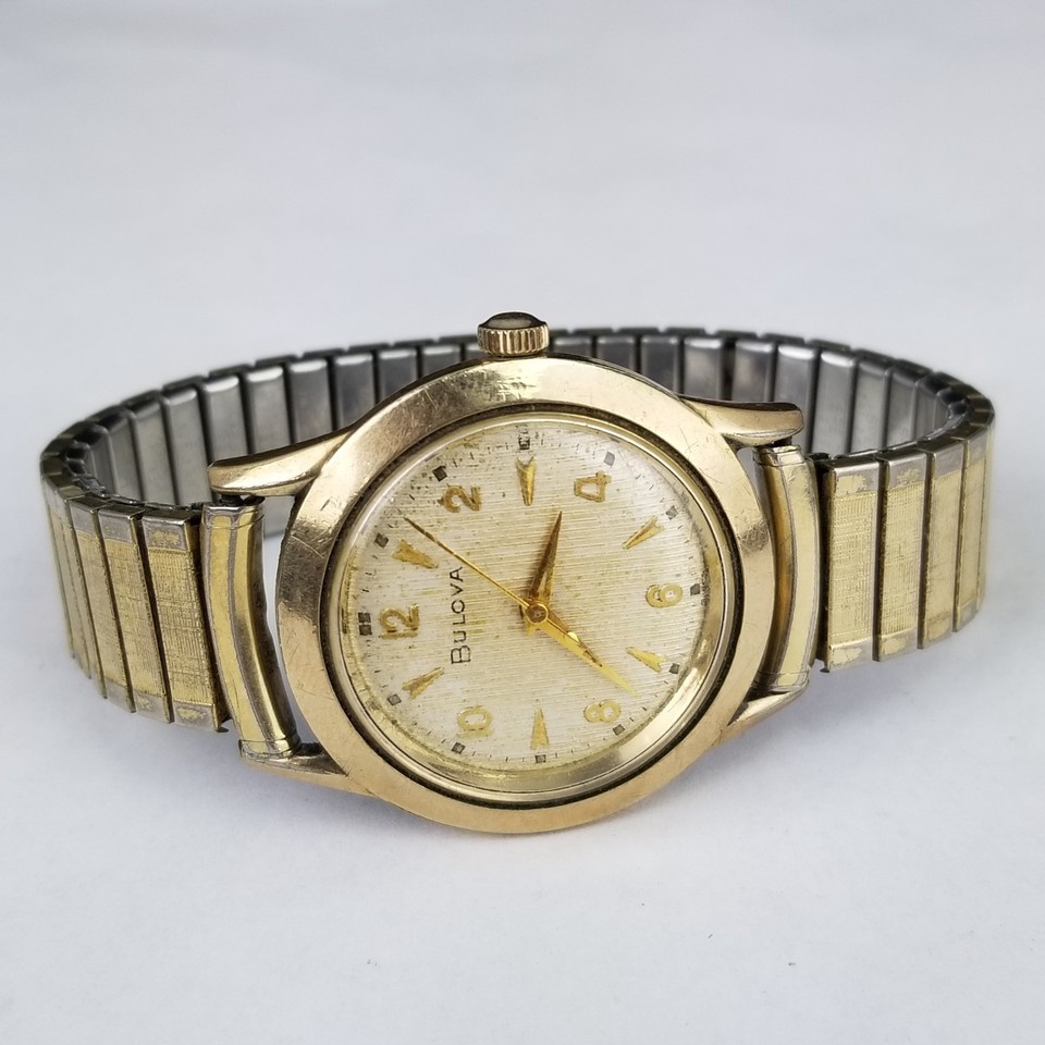 Vintage Bulova men's watch 1957 L7 waterproof GOLD plated 1950's vertical lines