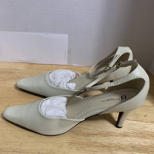 Boston Design Studio Strappy Pumps 9 M Pointed Toe Career Ivory Faux Leather