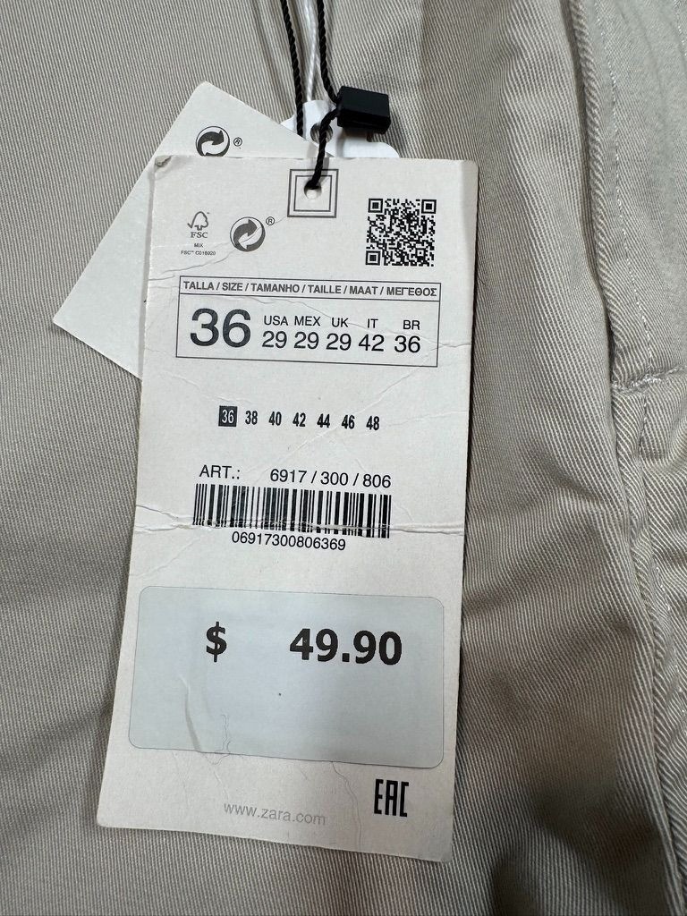 Zara The City Trouser Slim Fit Stretch Khaki Beige Casual Chino Pants Women's 29