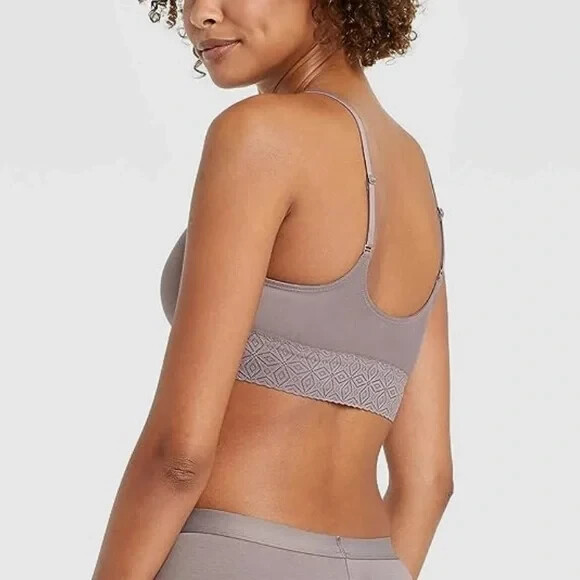 Auden Gray So Soft Bralette Lightly Lined Longline Scoop Lace Trim Women -Size M added to cart.