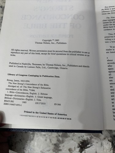 The New Strong's Concise Concordance of the Bible by James Strong 1985 Hardcover