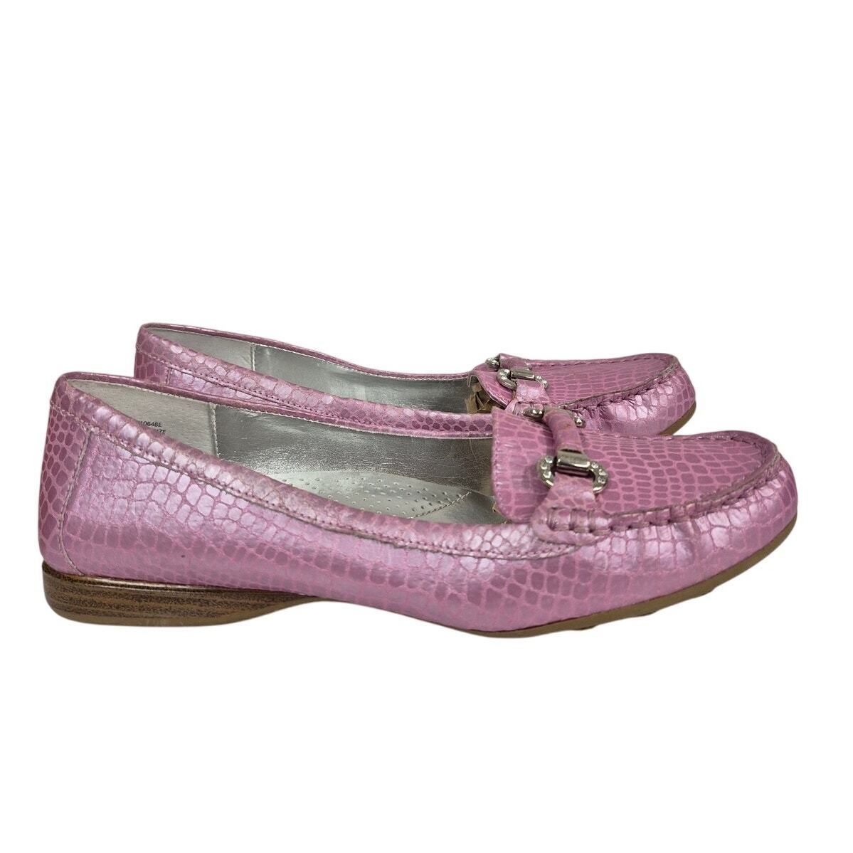 White Mountain Lavender Pink Metallic Moccasin Embossed Croc Leather Driving Loafers Sz 9 NWOT