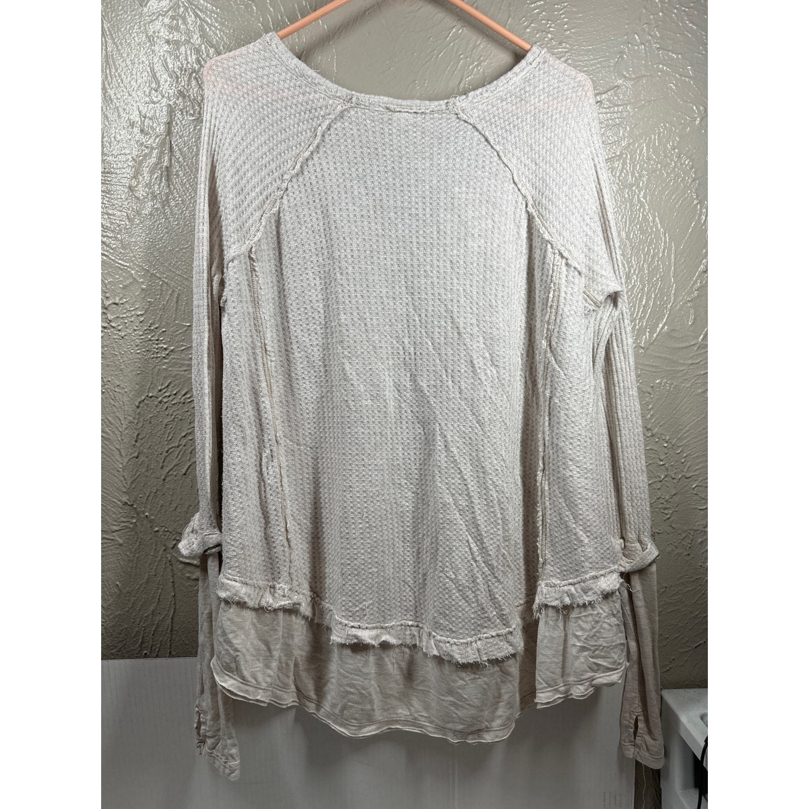Free People We The Free Womens Tunic Long Sleeve Shirt V Neck Waffle Cream XSThis item has been cleaned pers used clothing policy.