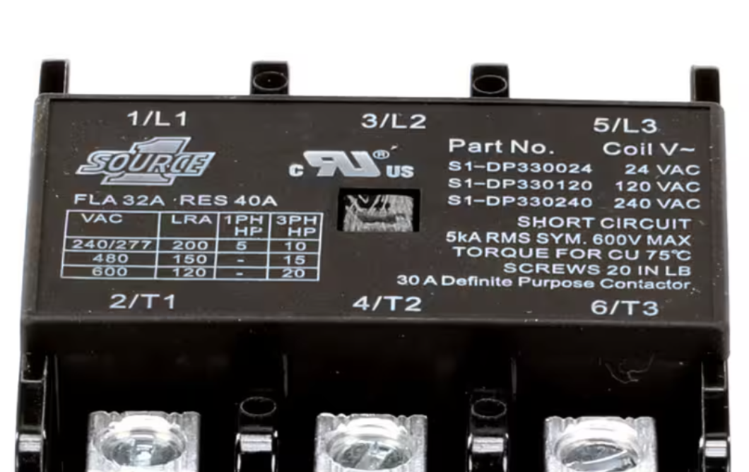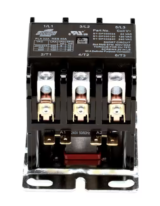 The York S1-DP330024, S1-DP330120, S1-DP330240 Contactor (1 Unit) is a 3-pole, 30-amp, 240-volt electrical contactor designed for dependable control of compressors, motors, and other high-load components in HVAC systems. Built to OEM specifications, it ensures reliable power distribution, stable operation, and long service life under continuous use. This contactor is compatible with various York equipment and provides safe, efficient switching for residential and commercial units.