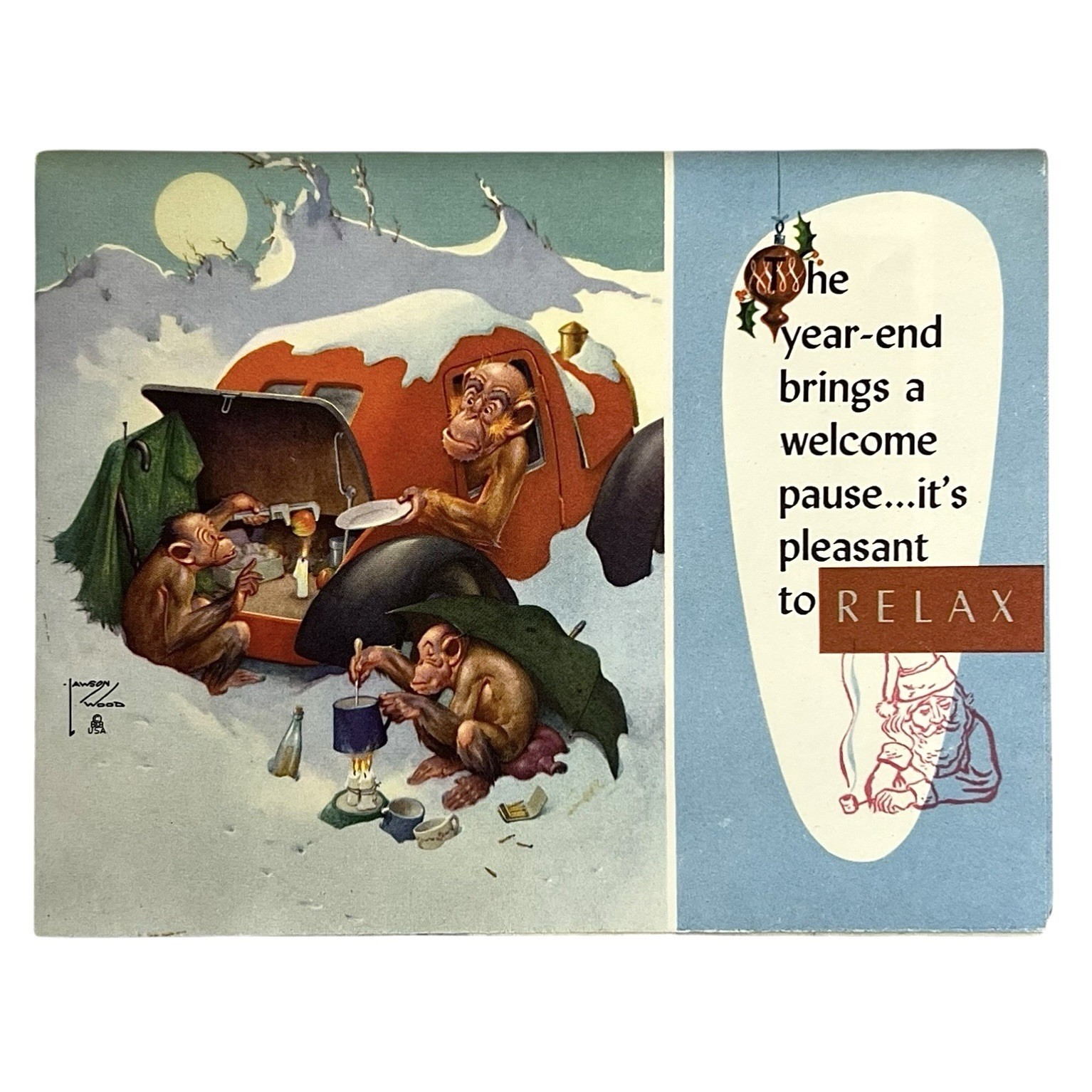 Lawson Wood Bumper Xmas Fold-Out Card Monkeys Brown & Bigelow Vintage 1950s