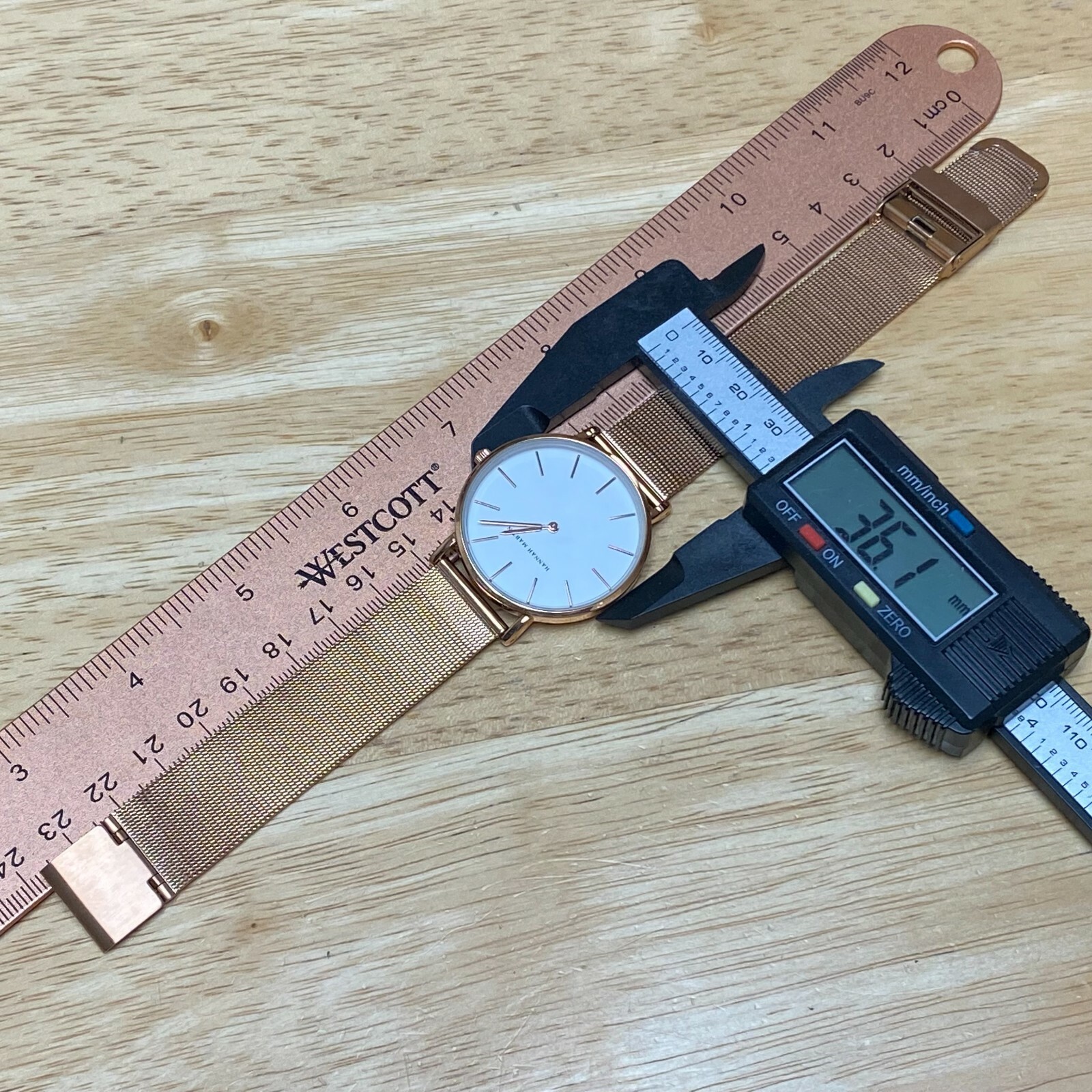 Watch dimension and size: please review the last image for size measurements. Shown on caliper is the approximate watch width in mm without crown or button.