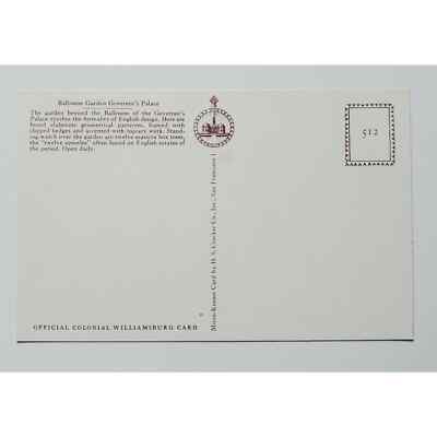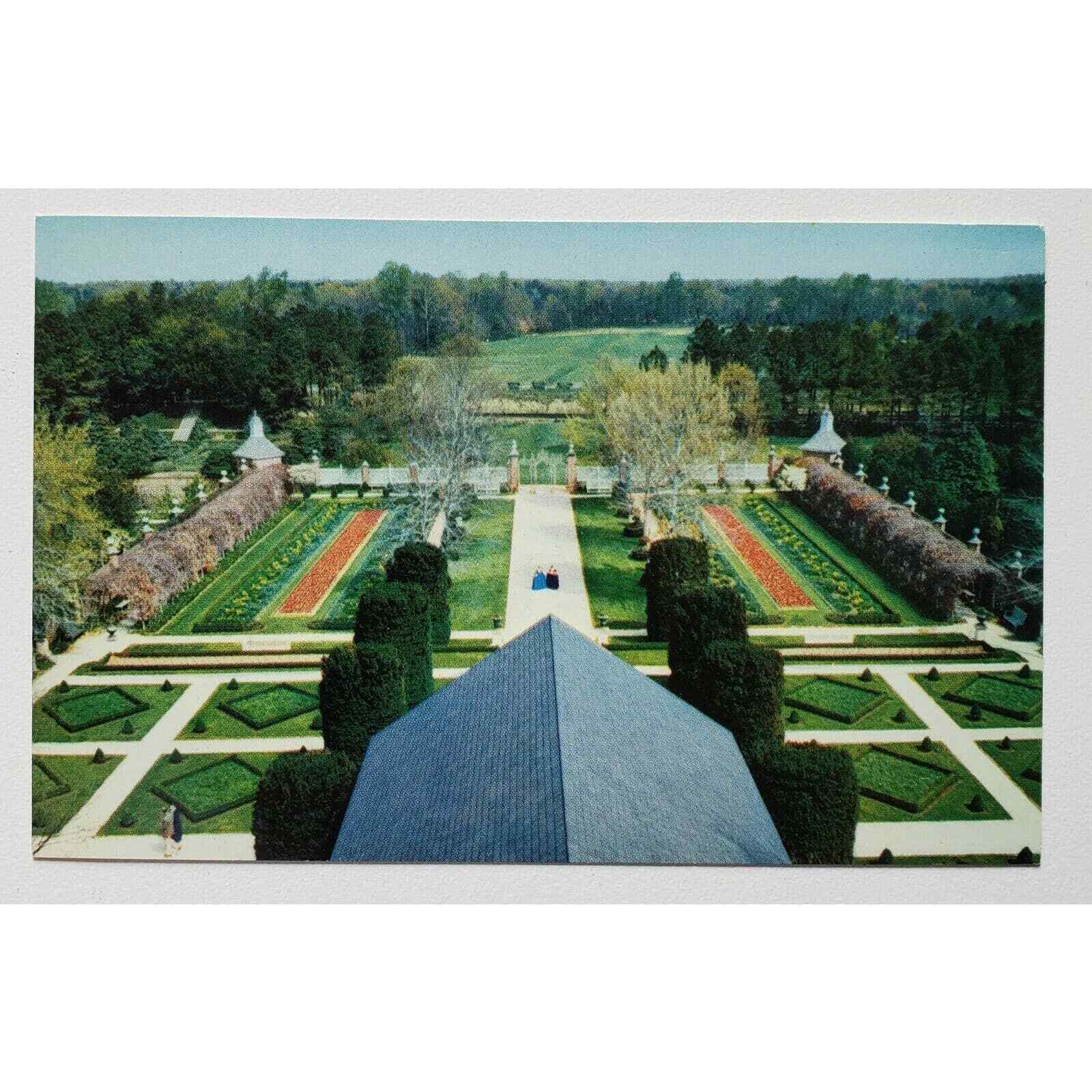 Vintage Divided Back Chrome Postcard Featuring the Ballroom Garden in the Governor's Palace Located in Williamsburg Virginia