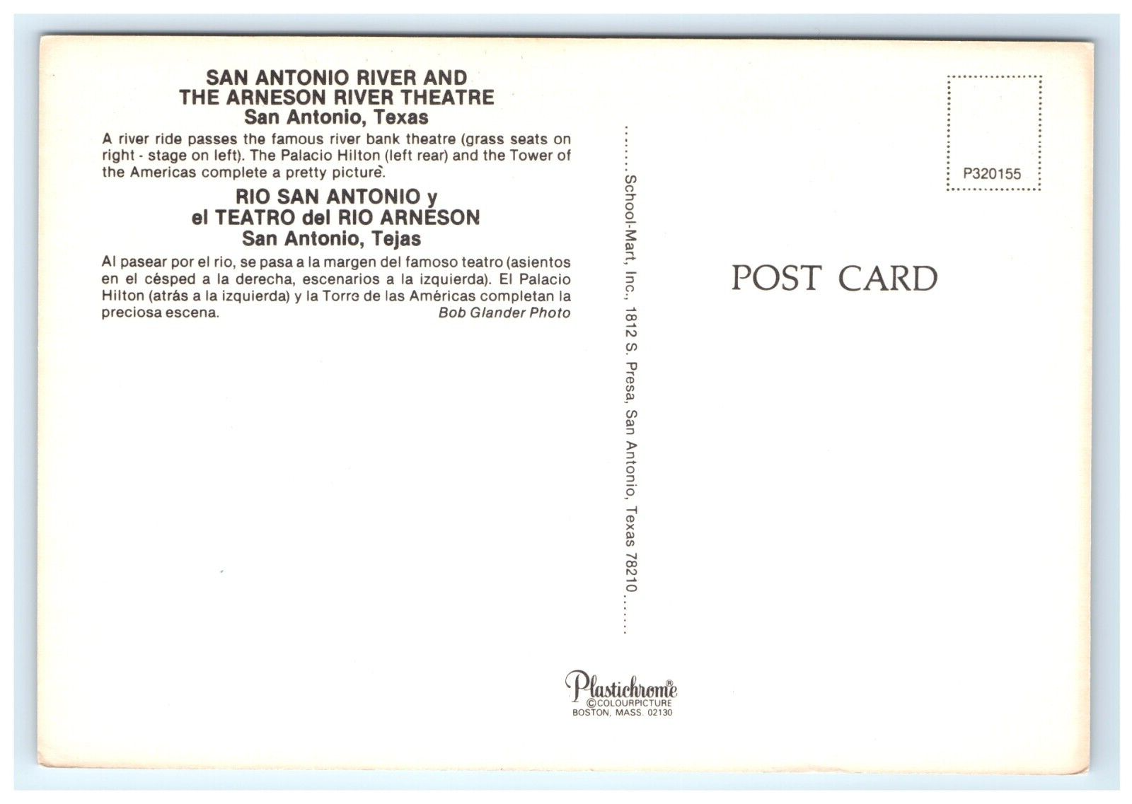 Vintage Divided Back Postcard Depicting the San Antonio River and the Arneson River Theatre Located in San Antonio Texas.