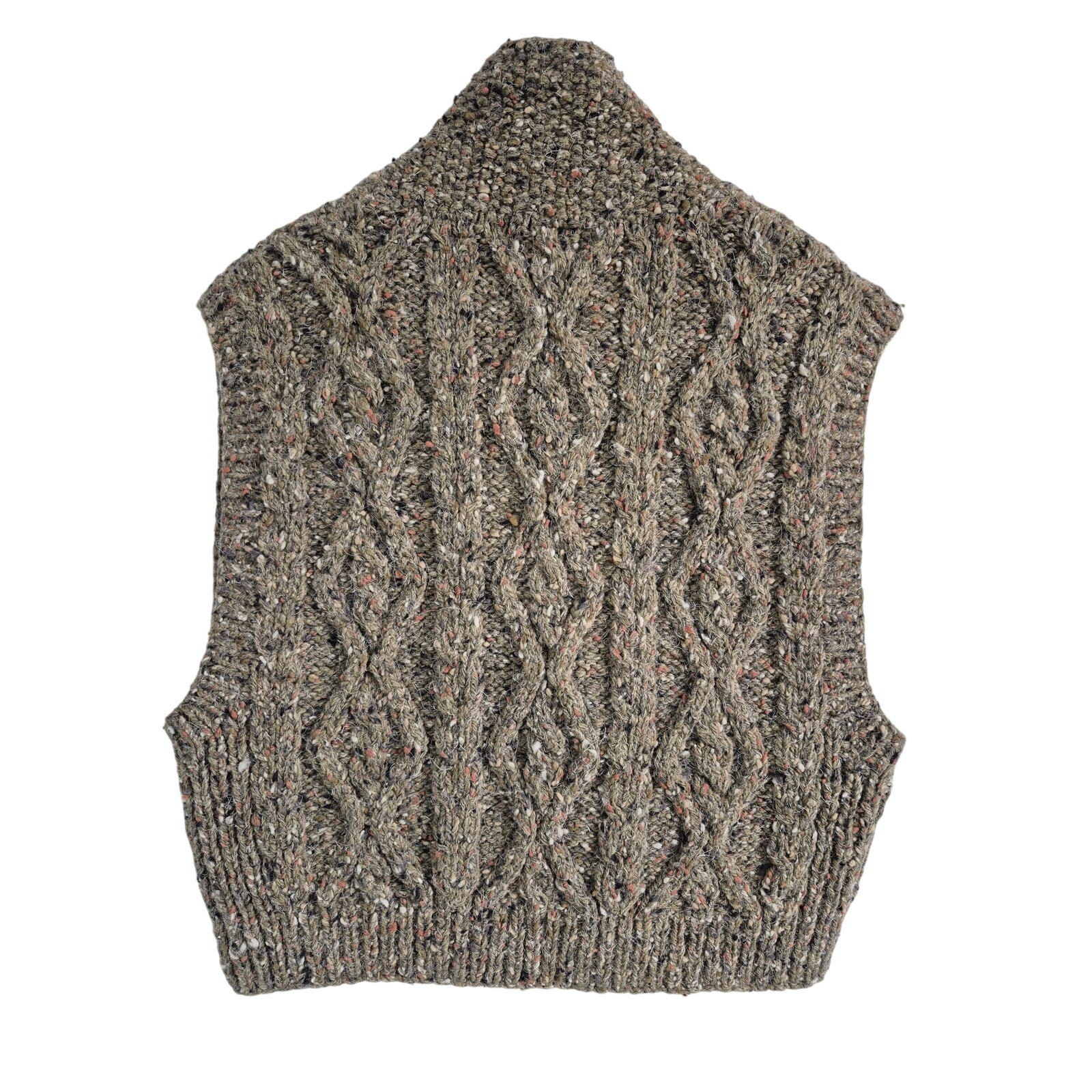 Vtg 80s Banana Republic Wool Tweed Shawl Collar Cable Knit Sweater Vest Sz S Unisex Button in excellent condition. It has some red, black and white flecks in the green, yummy!