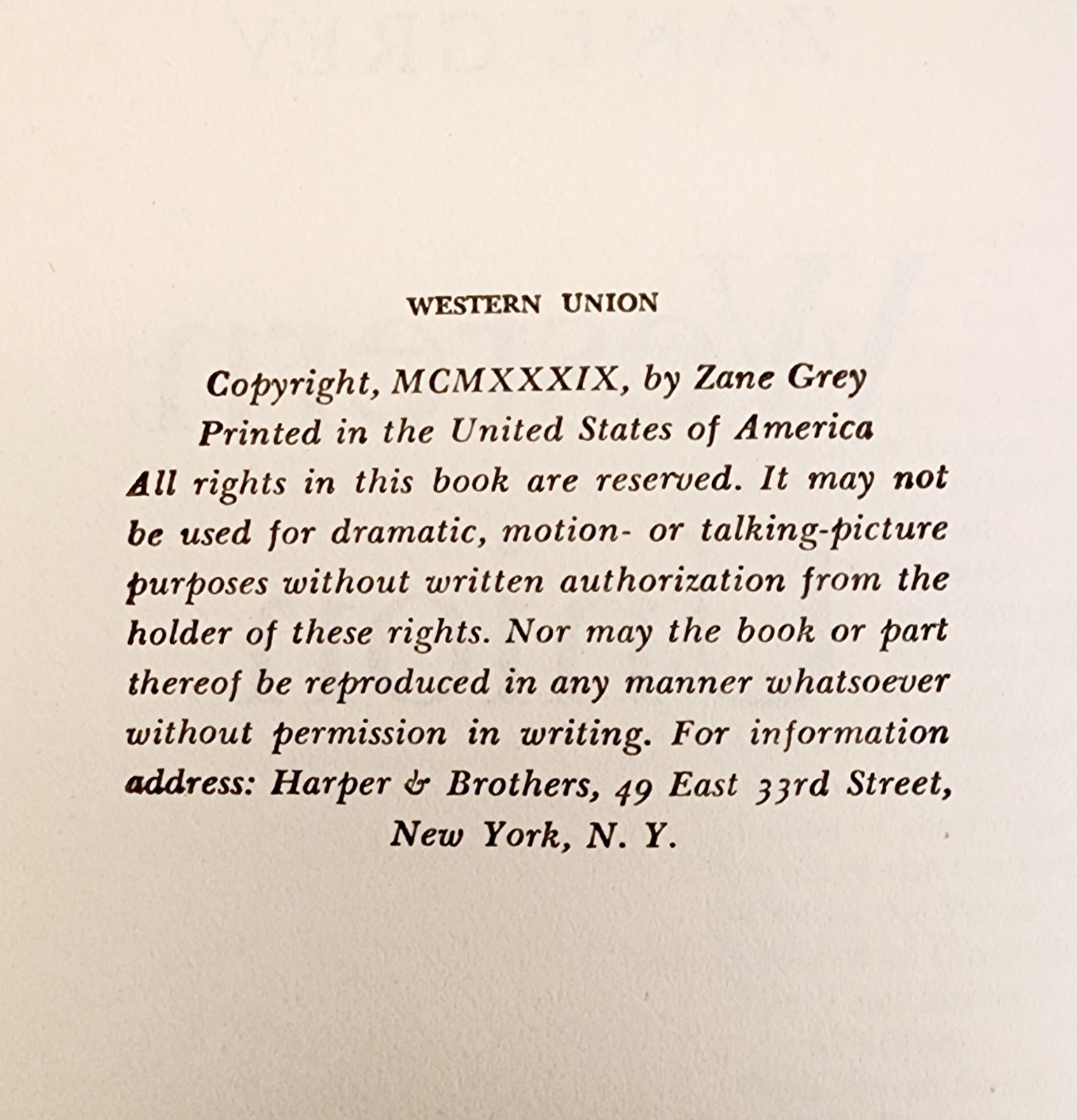 1939 Western Union Zane Grey Western Adventure Vintage HC Communication 10BK1