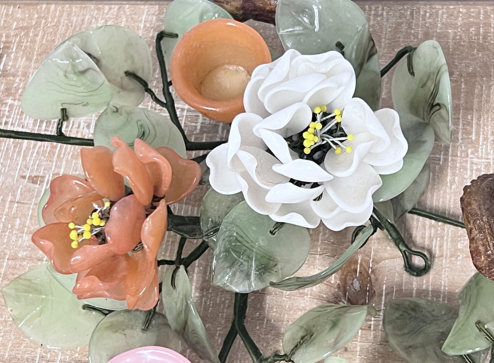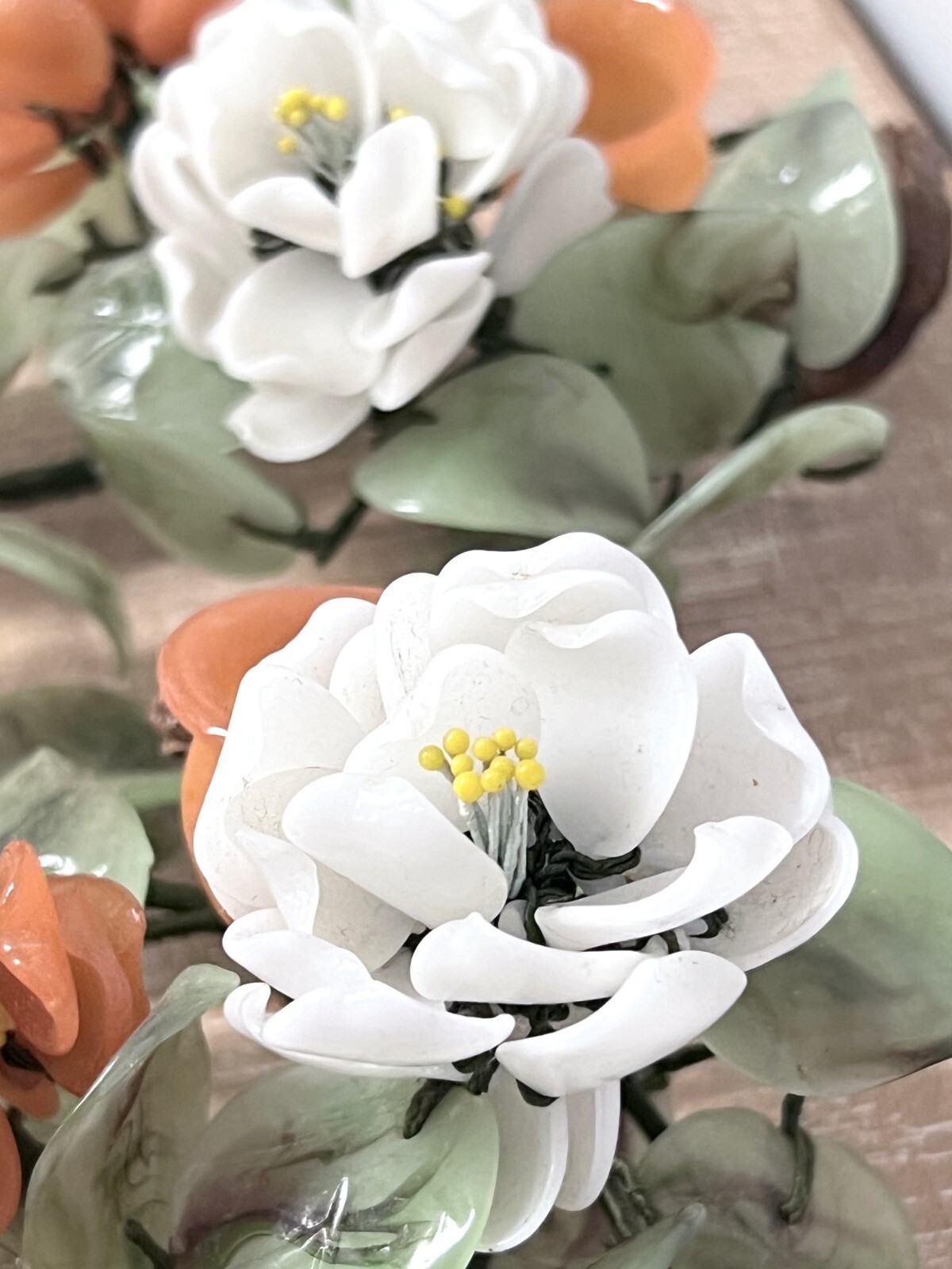 Set 2 Vintage Italian Murano Hand Blown Venetian Art Glass Flowers On Wire 9”x8”