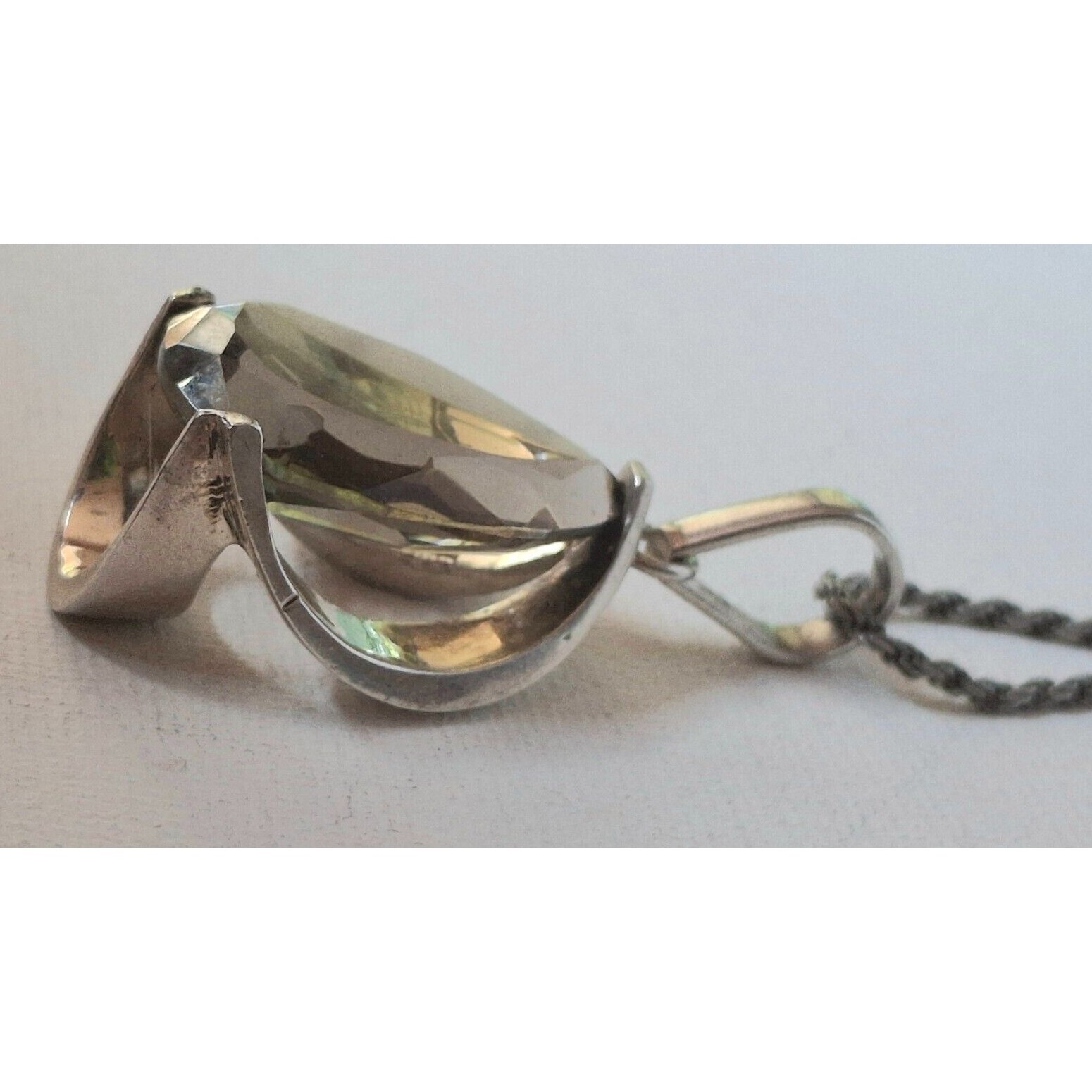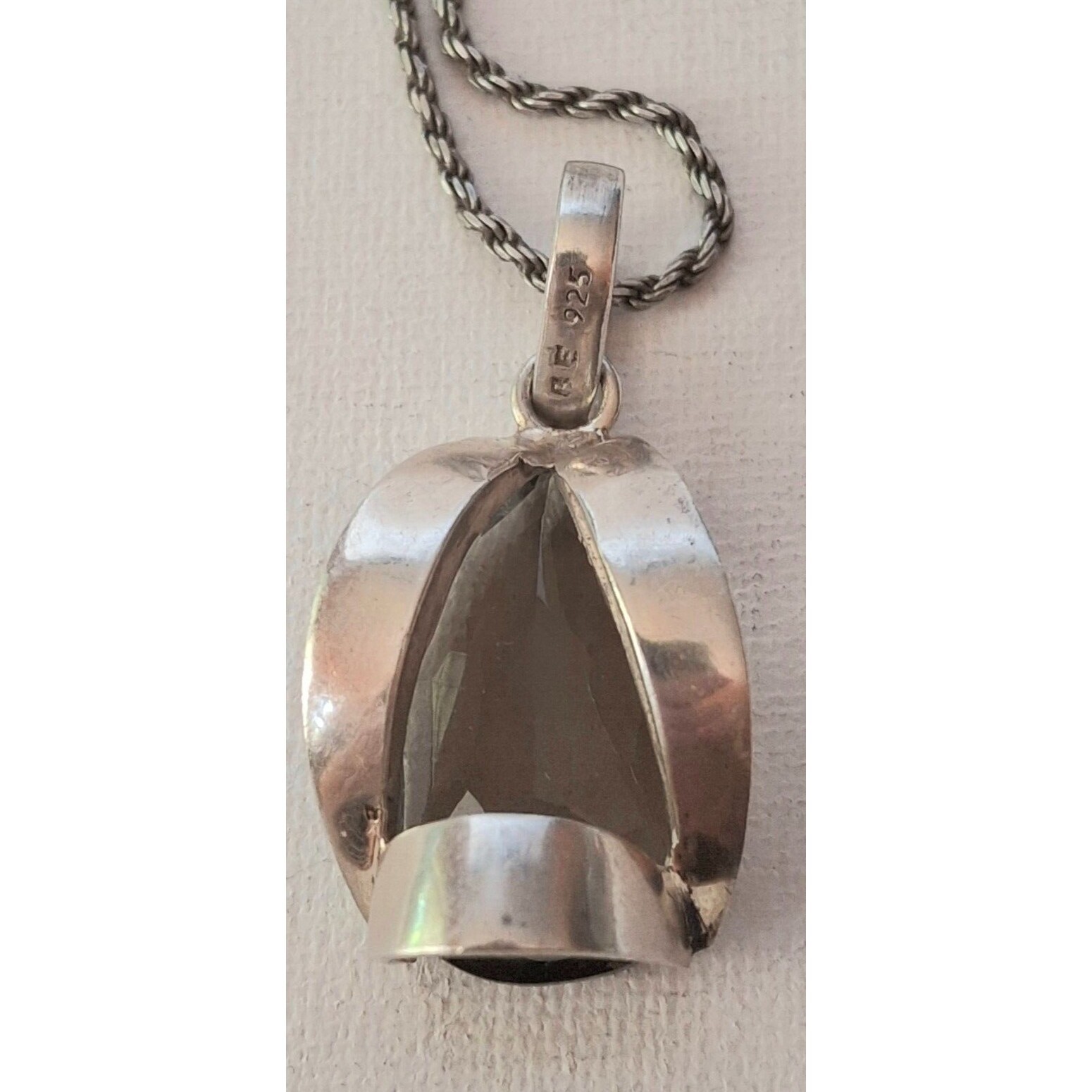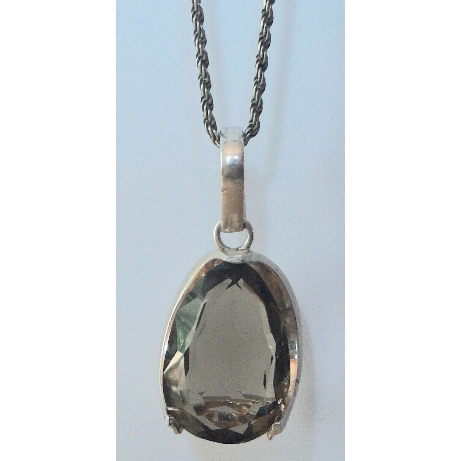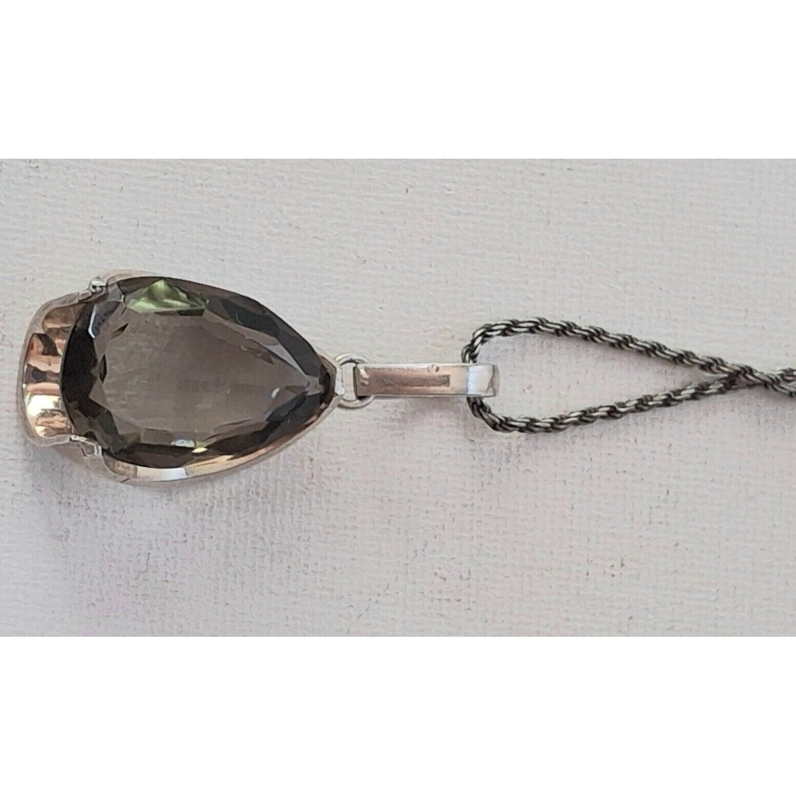 Exceptionally Well Made 925 Sterling Silver And Smoky Crystal Pendant Sky