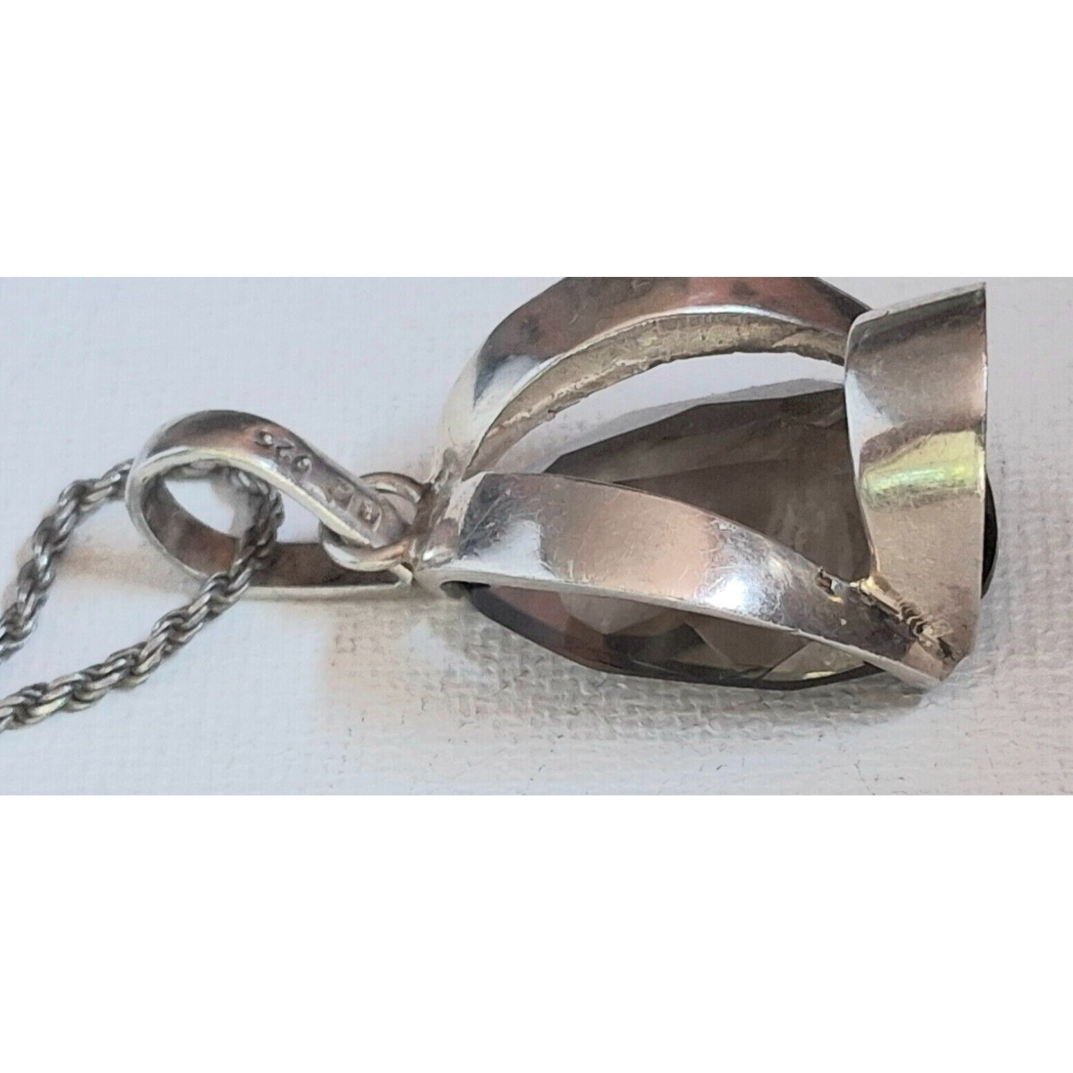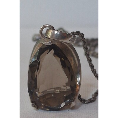 EXCEPTIONALLY WELL MADE 925 STERLING SILVER AND SMOKY CRYSTAL PENDANT NECKLACE SKY