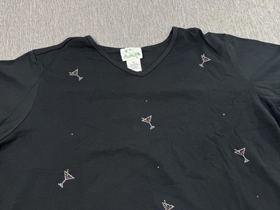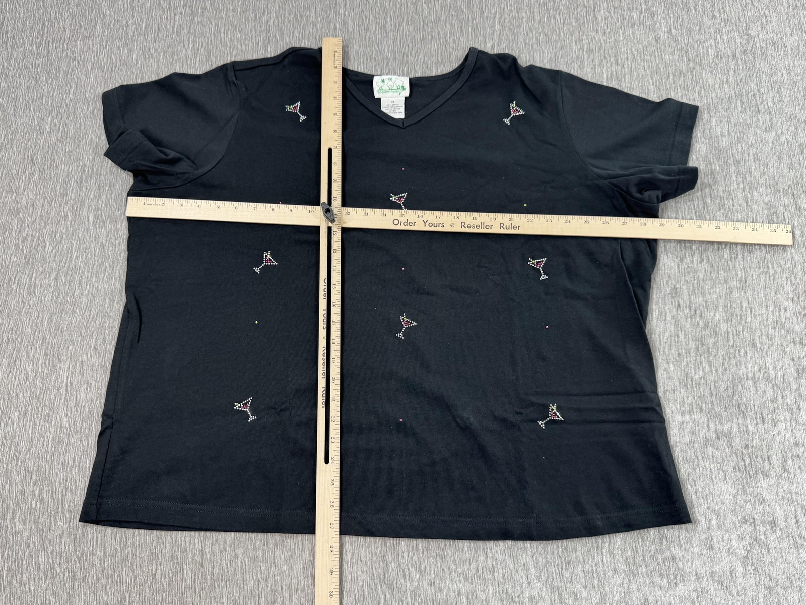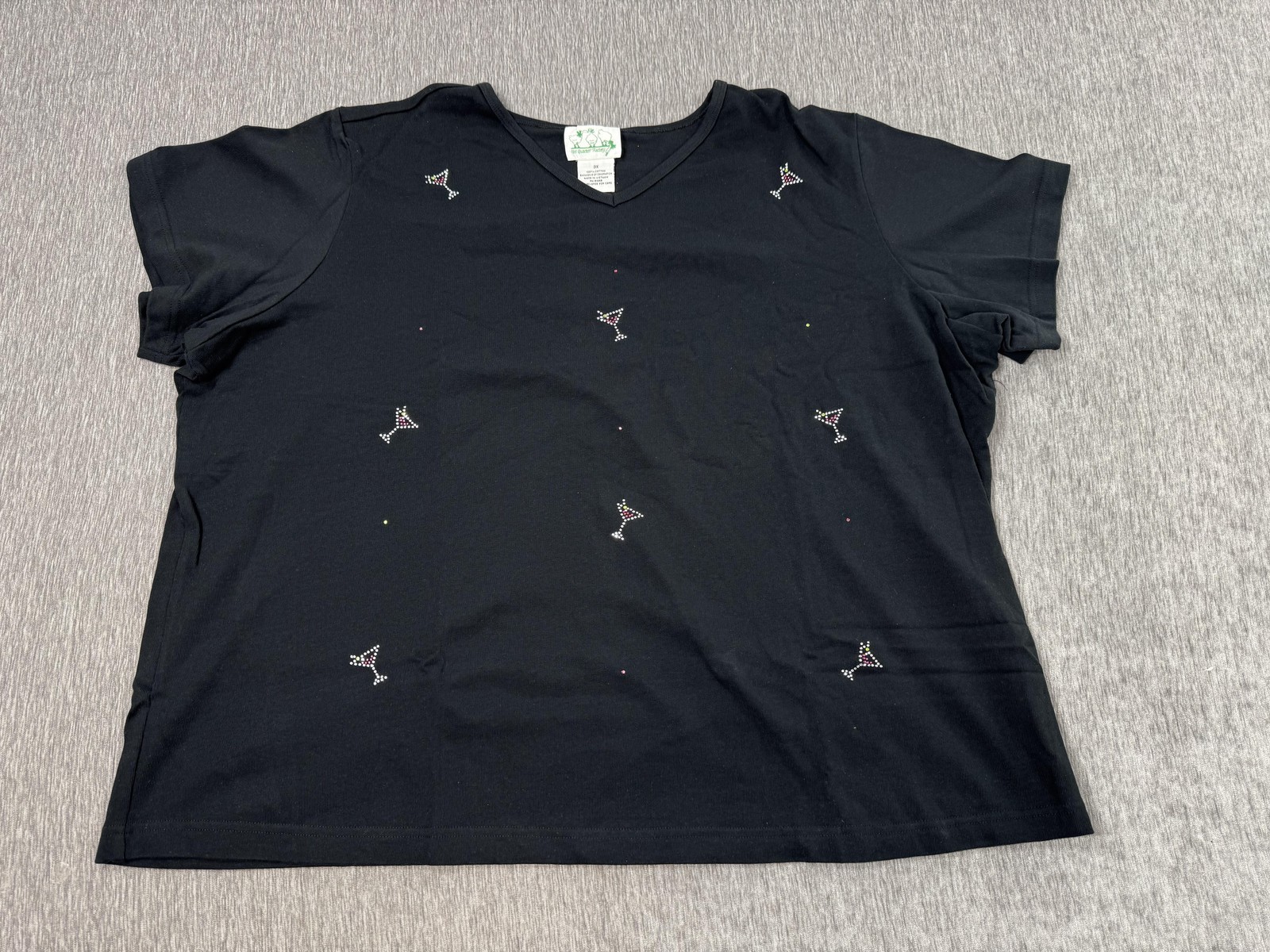 Quacker Factory Shirt Womens 3X Black V Neck Rhinestone Cocktail Martini Cruise