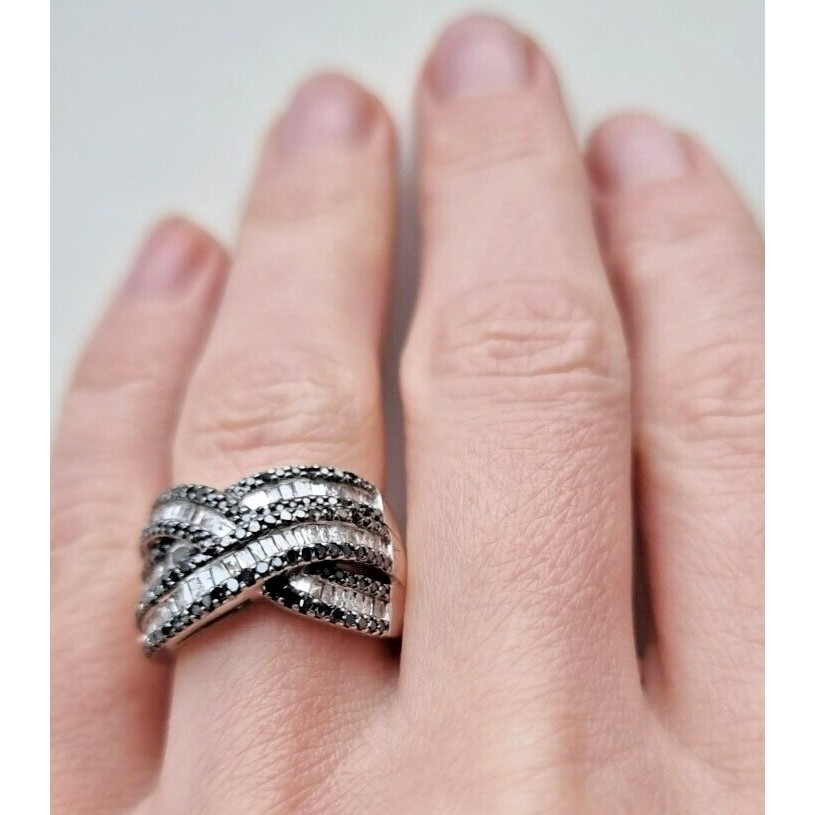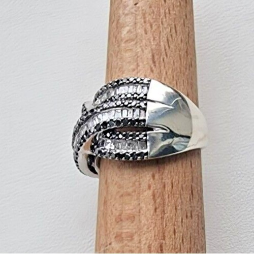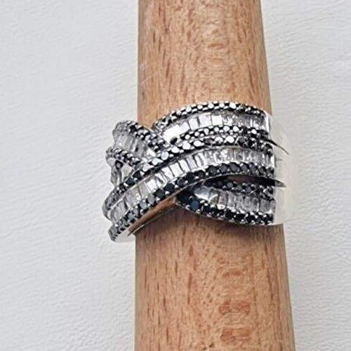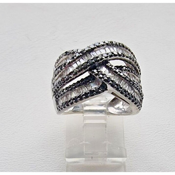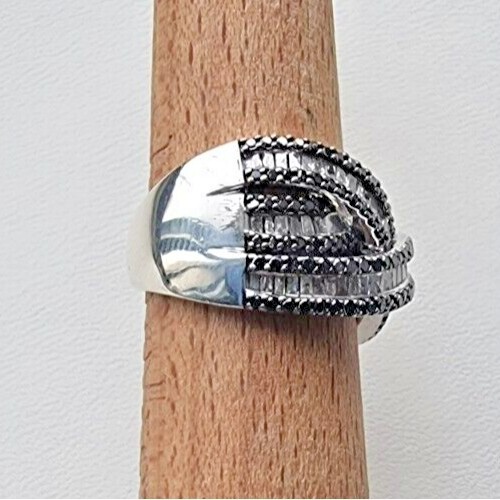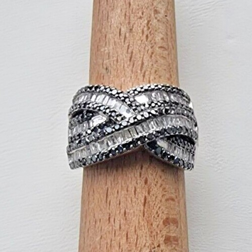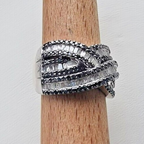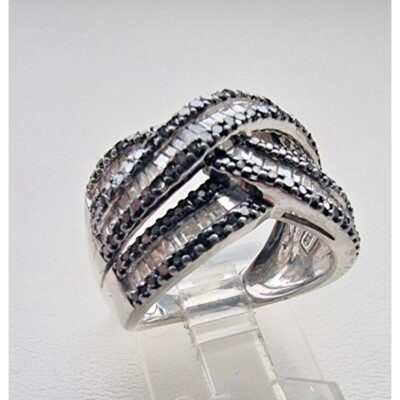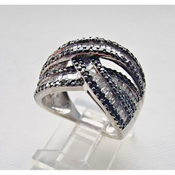 FABULOUS 925 STERLING SILVER NATURAL WHITE AND BLACK DIAMOND RING SIZE 6 AT