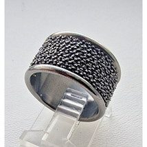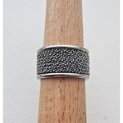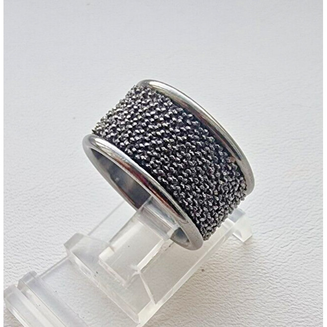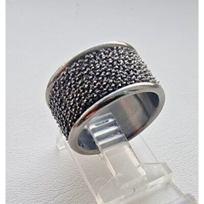 MAGNIFICENT VINTAGE ITALIAN WIDE 925 STERLING SILVER BLACK RHODIUM RING SIZE6.25 AT