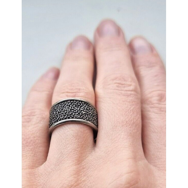 Magnificent Vintage Italian Wide 925 Sterling Silver Black Rhodium Ring At