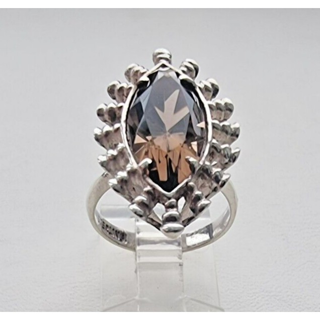 Vintage Rare 925 Sterling Maruise Shape 15x8mm Silver Smoky Topaz Ring Size At added to cart.