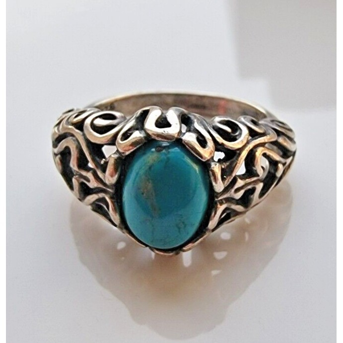 Vintage 925 Sterling Silver Blue Turquoise Scroll Swirl Ring Size 5.25 At