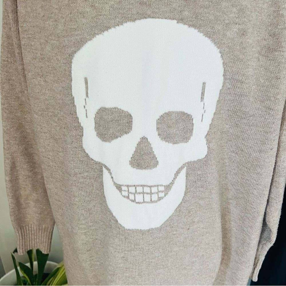 Sweet Romeo Skull Back Open Long Sleeve Cardigan Sweater, Tan/White, Medium
