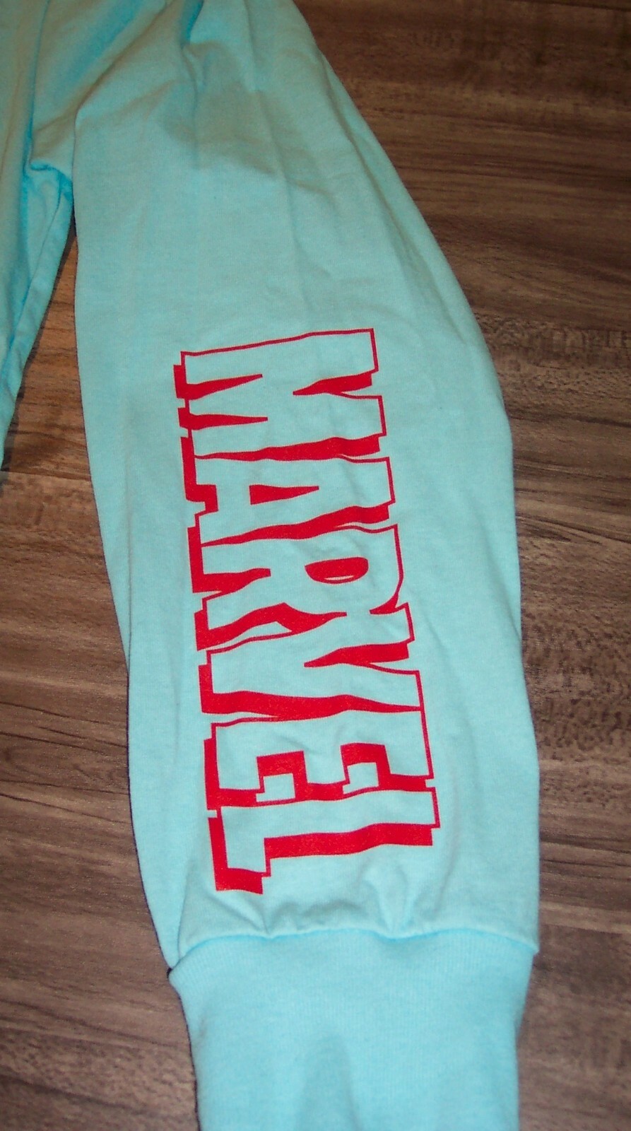 This is a VINTAGE STYLE Marvel Comics MIGHTY AVENGERS Long Sleeve T-shirt. It is a size SMALL, and it is NEW with the tag. It is 20 inches from armpit to armpit and 28 inches in length. Nice Shirt With THOR, CAPTAIN AMERICA, IRON MAN, HAWKEYE, BLACK WIDOW, VISION AND THE INCREDIBLE HULK. The Print is made to look vintage. Combine auctions to save on shipping. AD