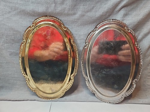 Set of 2 Gold Tone and Silver Tone Serving Plates, 9.5'' x 6.5'', Vintage