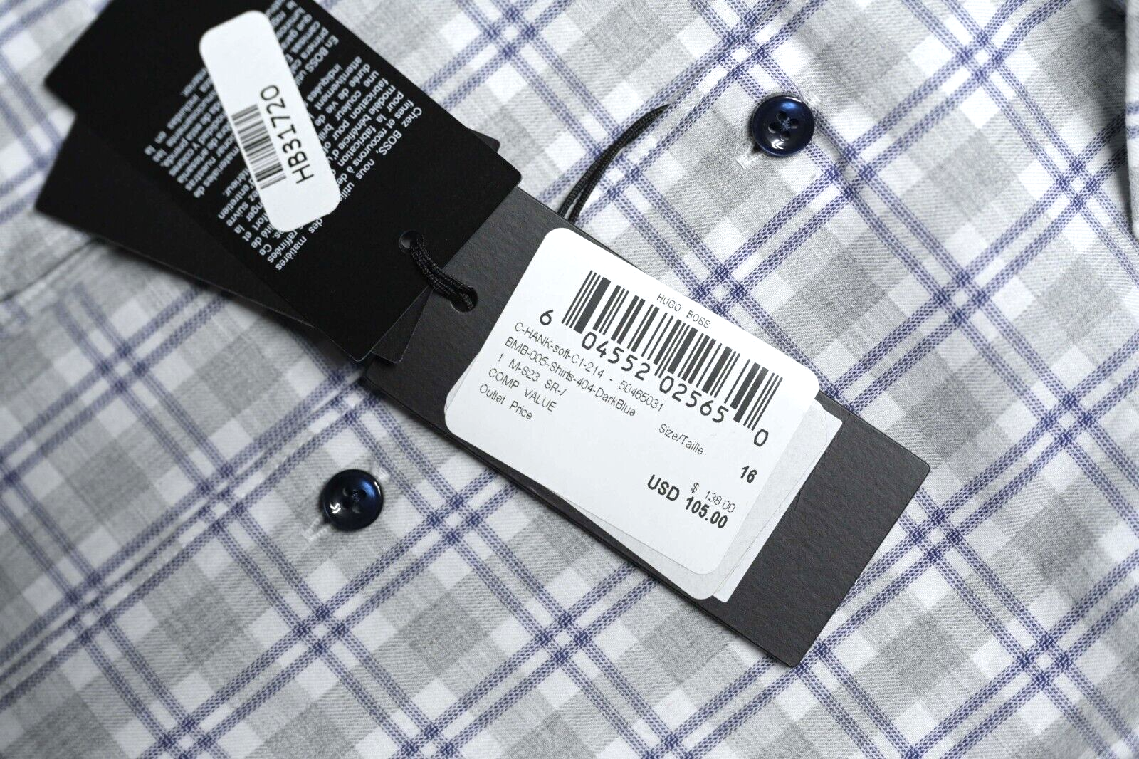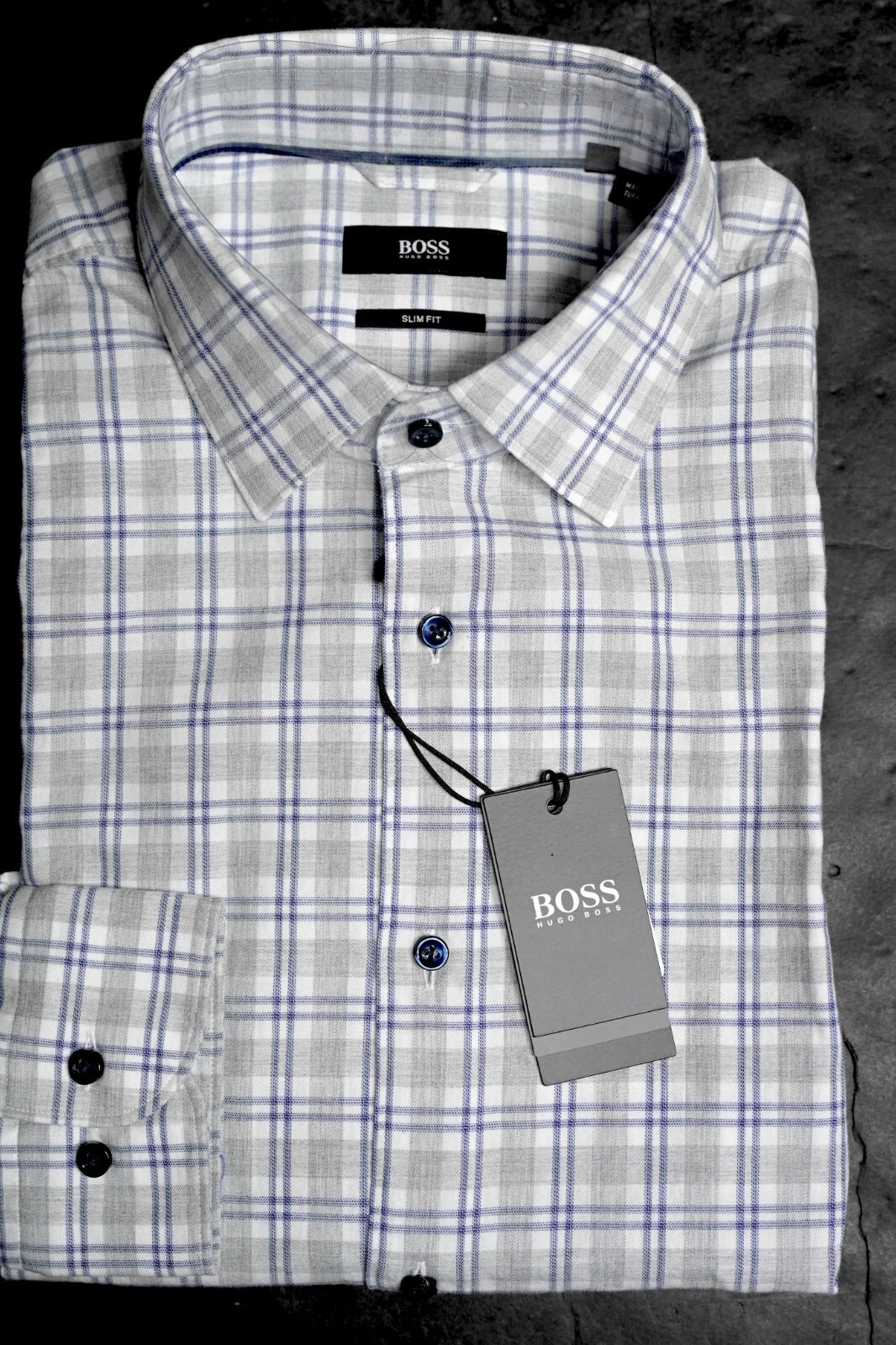 NWT Hugo Boss Herren Hank Soft Slim Fit Blue/Grey Check Cotton Hemd Hemd Hemd