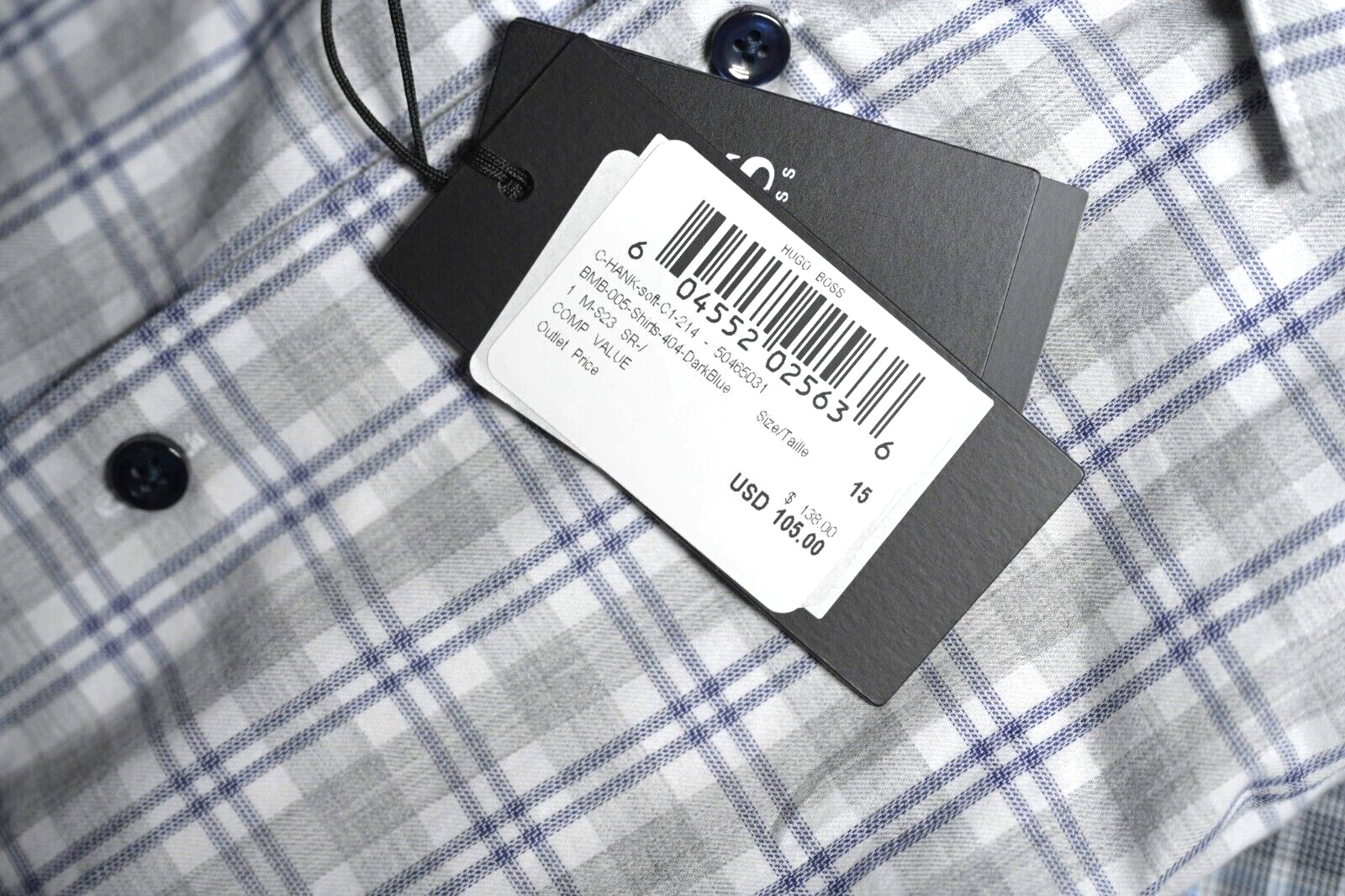 Hugo Boss Herren Hank Weiches Slim Fit Blau/Grau Kariertes Baumwoll Hemd 38 15