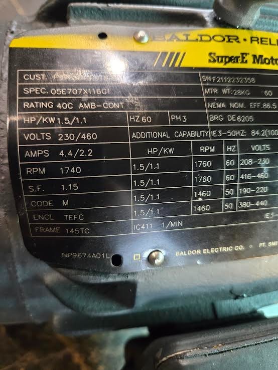 Baldor Pump Motor 0613.918.851 1.5HP 1.1KW 230/460V 1740 RPM TEFC 145TC 3PH NEW $899