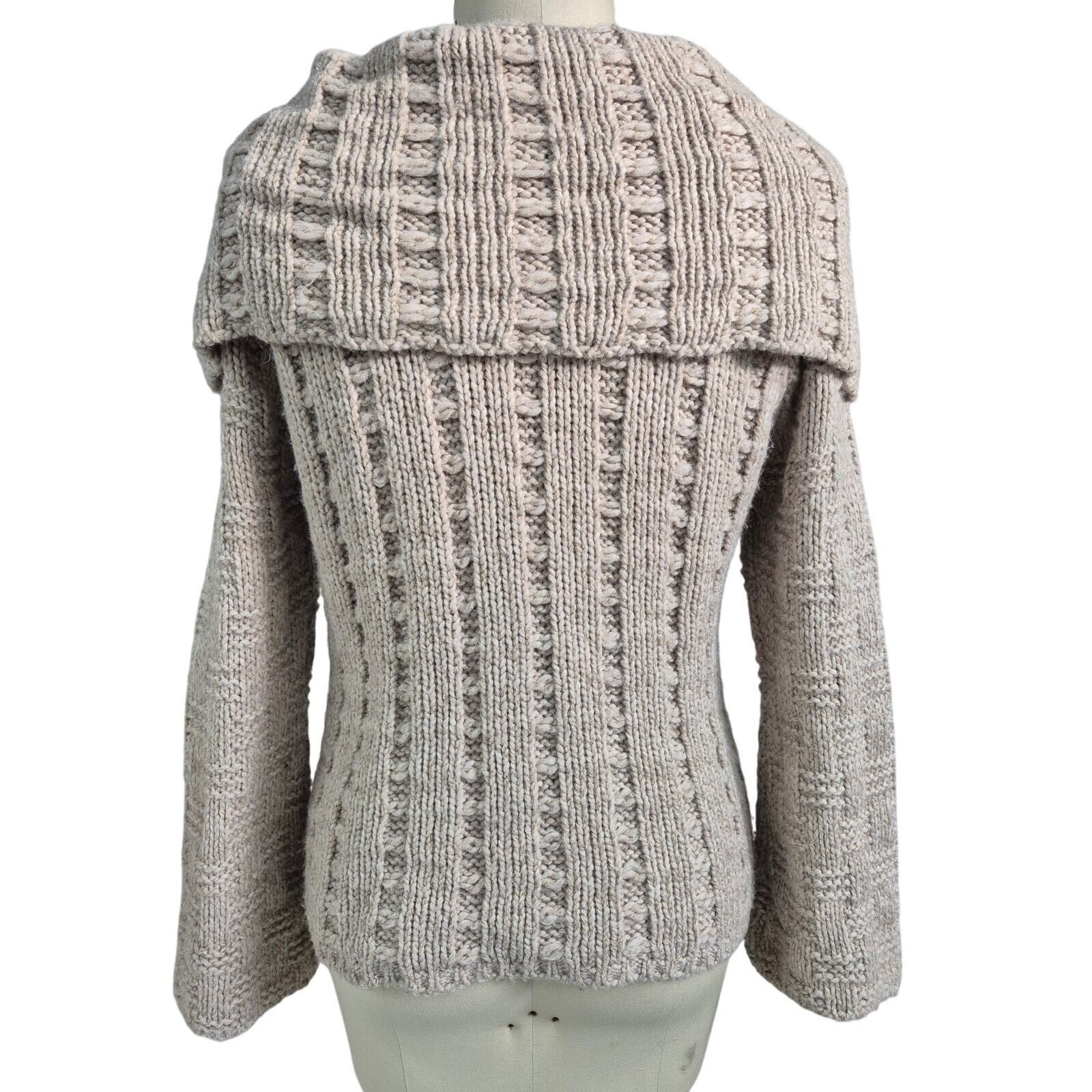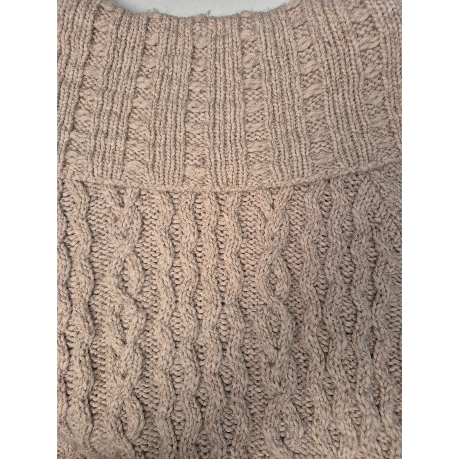 Silvia Novelli Sz L Tan Wool Blend Sweater Cable knit Oversized High Cowl Collar