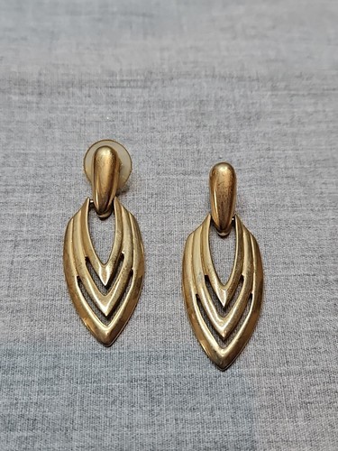 Gold Tone Vertical Leaf Design Style Earrings, 2'' Length Vintage