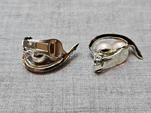 Double Pearl/Diamond Costume Jewelry Clip On Earrings, Silver Tone Vintage