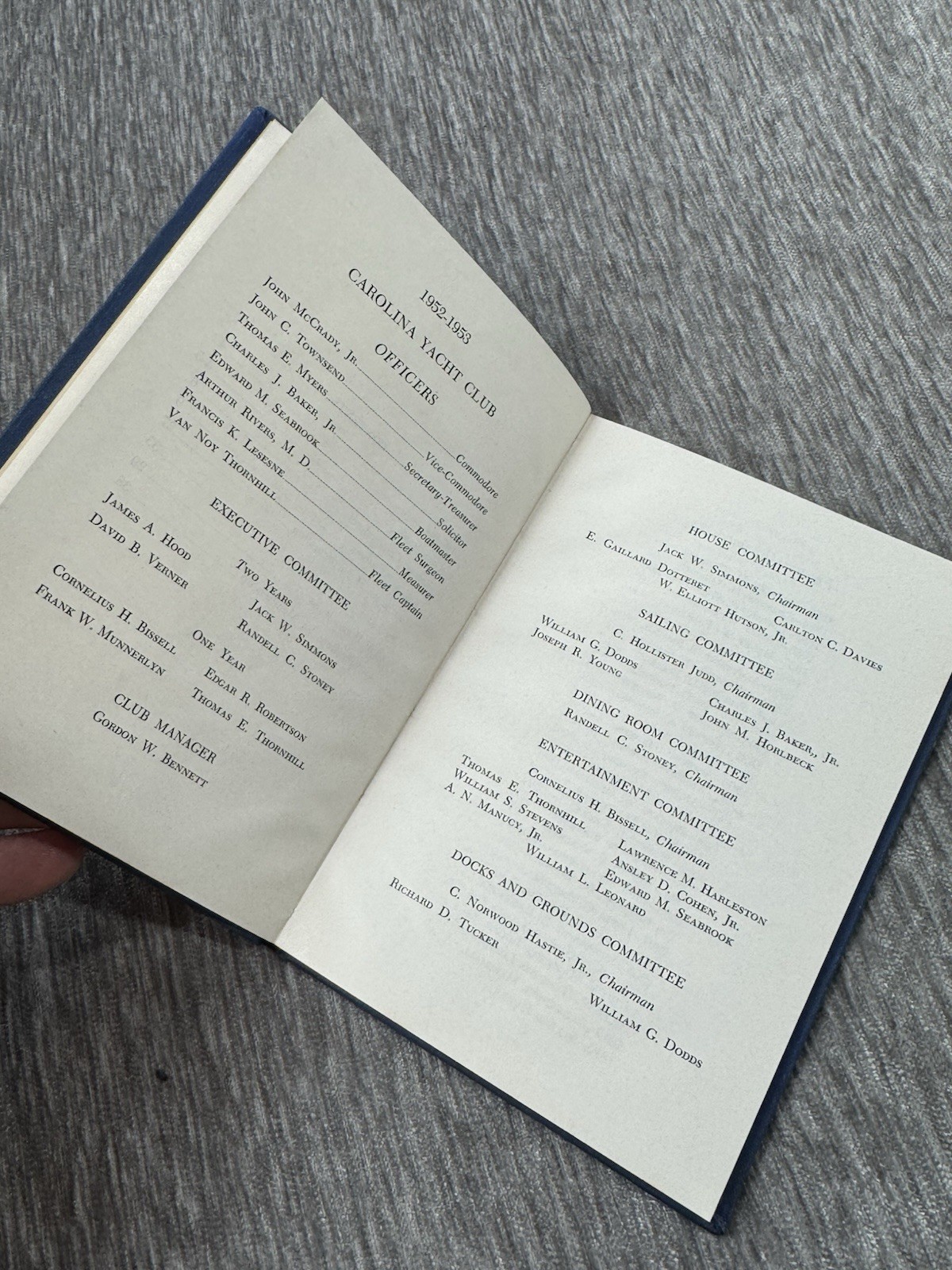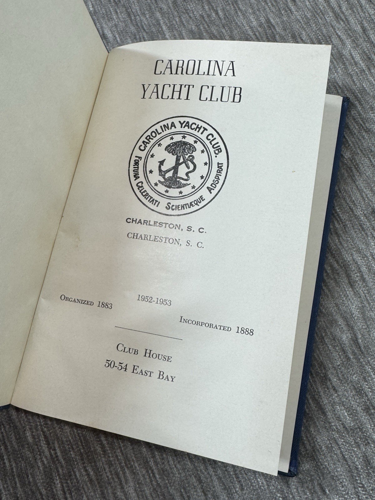 For sale is Carolina Yacht Club Charleston, SC 1952-1953 Member Book