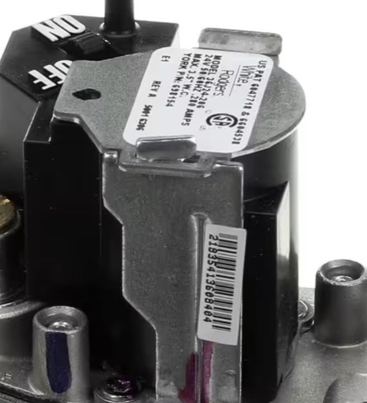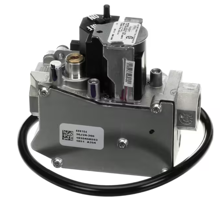 The York 698154 Gas Valve (1 Unit) is a genuine OEM single-stage valve manufactured by White-Rodgers for reliable control of natural gas flow in York furnaces. This 24-volt valve ensures safe and efficient ignition sequencing, providing consistent heating performance while maintaining system safety and energy efficiency.