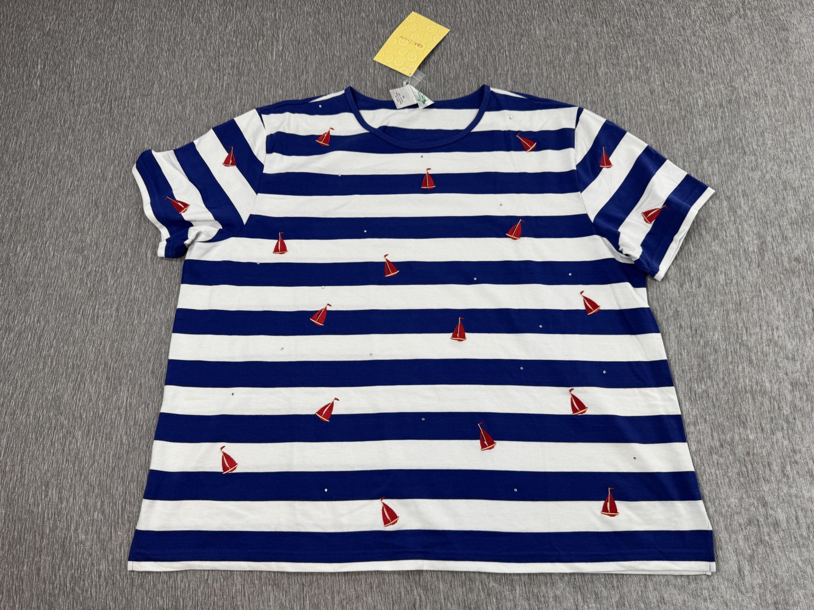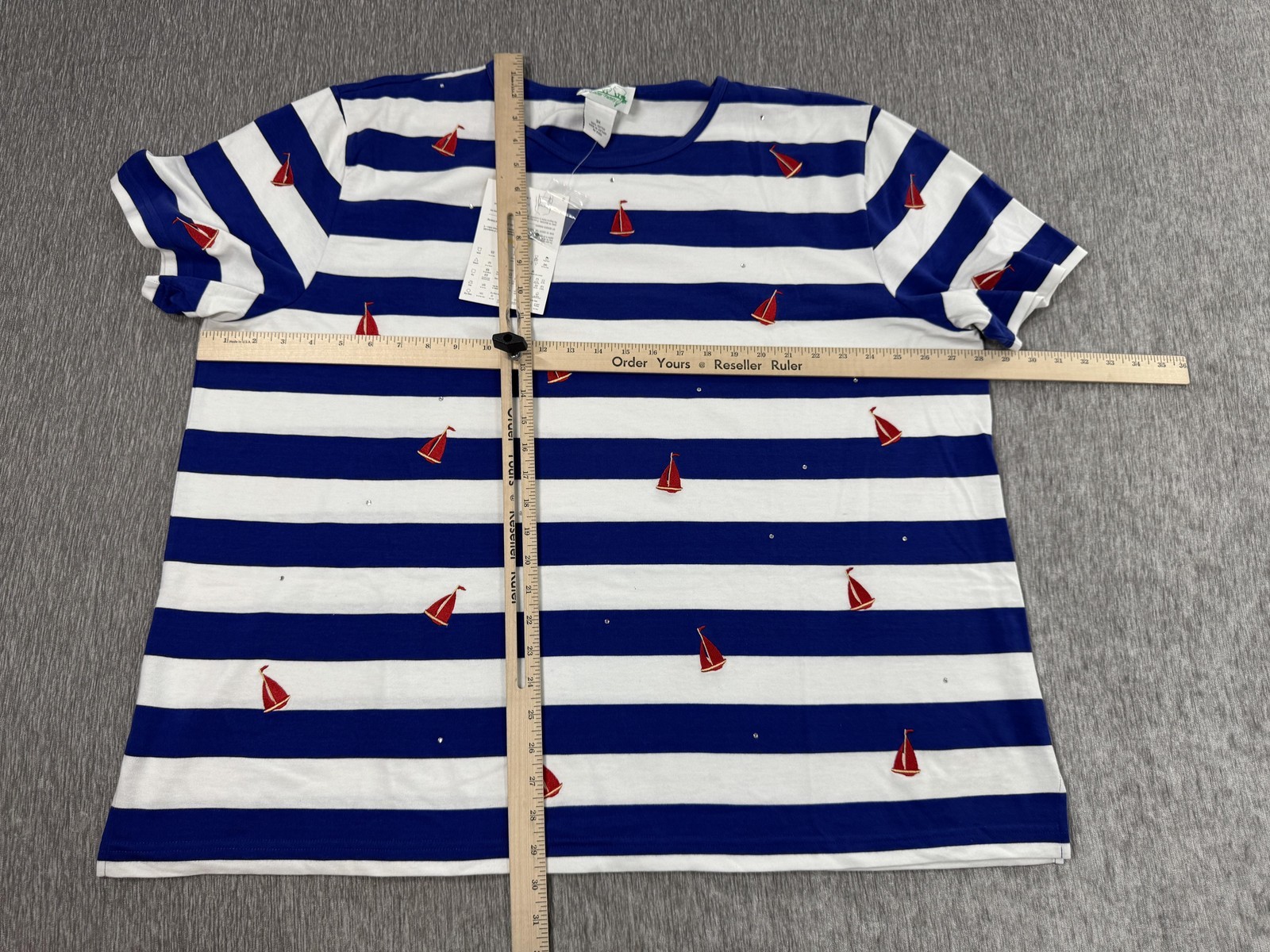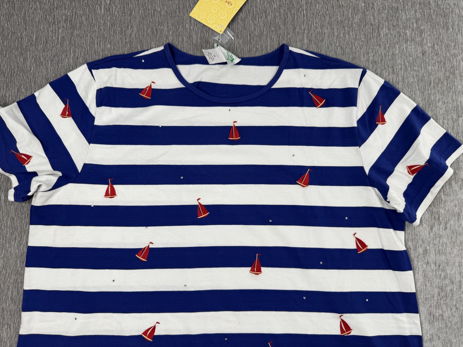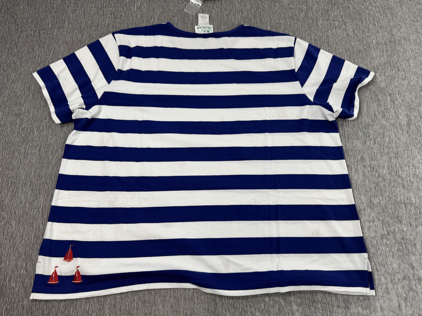 Quacker Factory Shirt Womens 3X Blue White Stripe Sailboat Embroidered Nautical