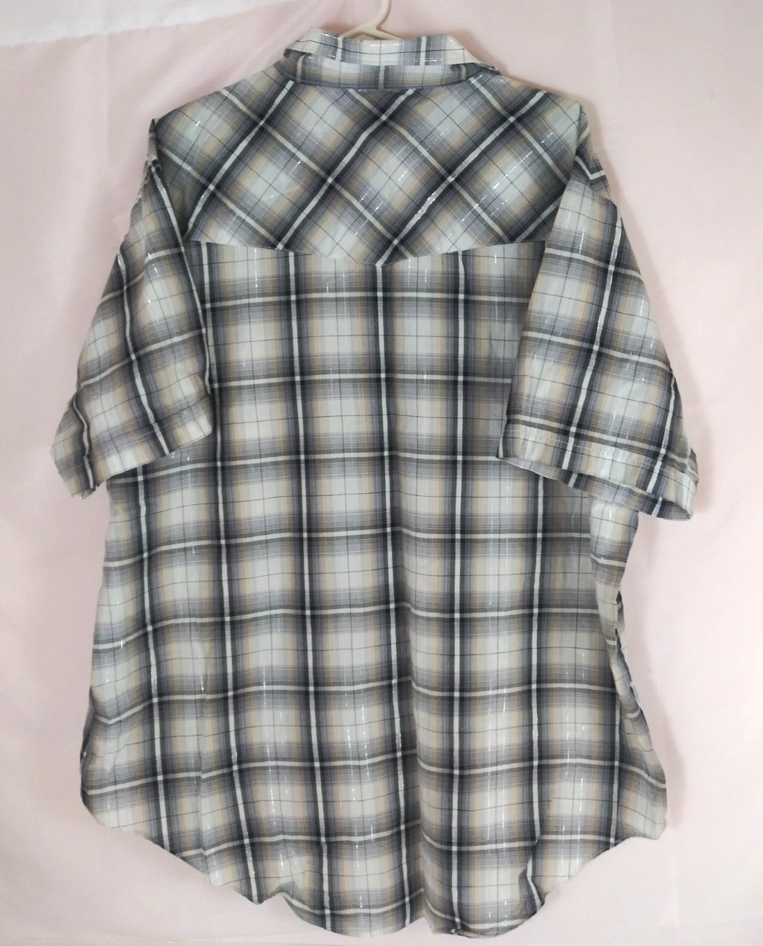 This is for a Ely Cattleman Men's Gray Plaid Short Sleeve Western Pearl Snap Shirt Size XXL.